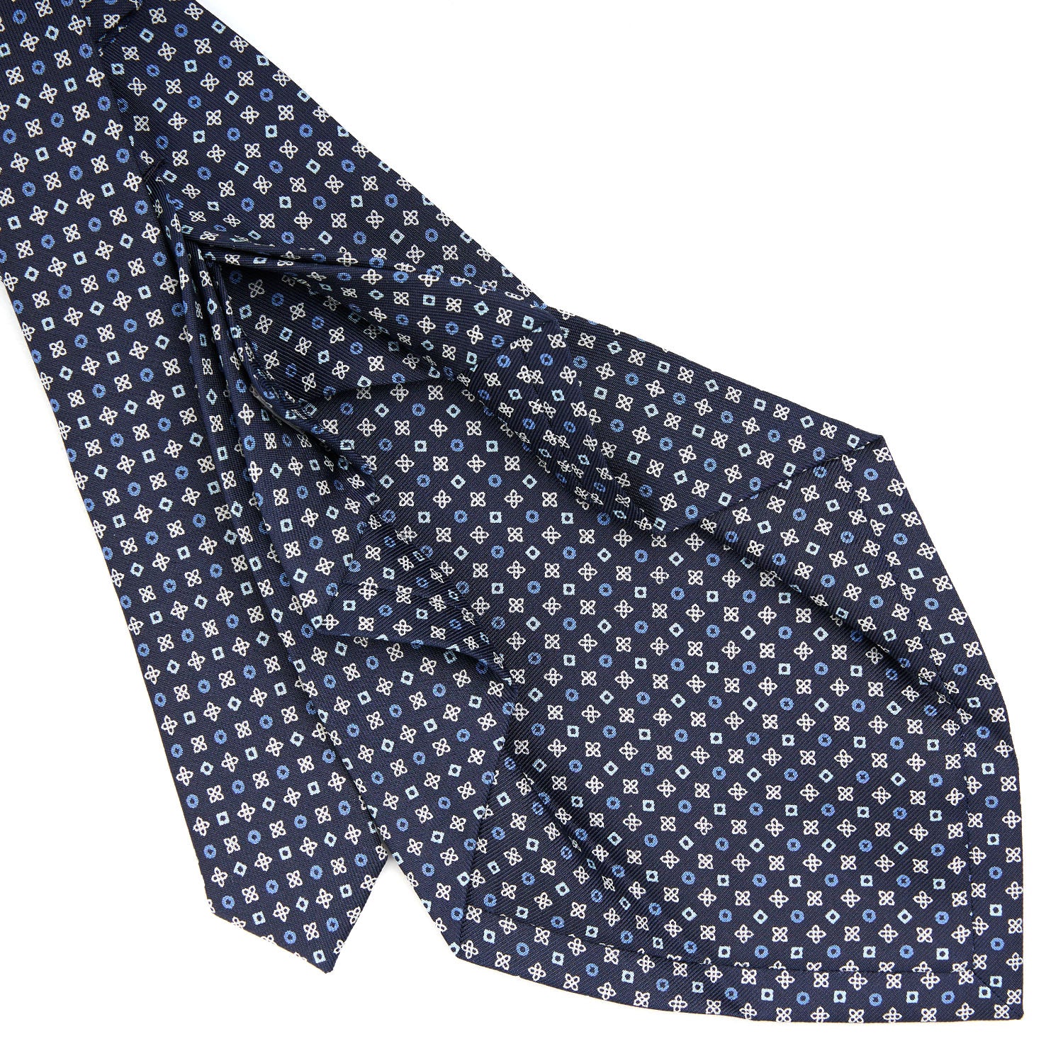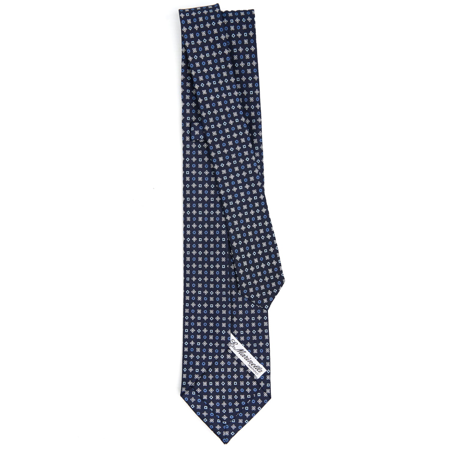 La cravatta 7 pieghe E. Marinella è un prodotto totalmente artigianale, dalla stampa a mano della seta al taglio singolo del tessuto, alla chiusura del prodotto finito. Si tratta di una cravatta molto preziosa perché la quantità di seta impiegata è maggiore: lo square di seta viene piegato sette volte su se stesso donando alla cravatta una maggiore consistenza, anche all'altezza del nodo, e pesantezza.