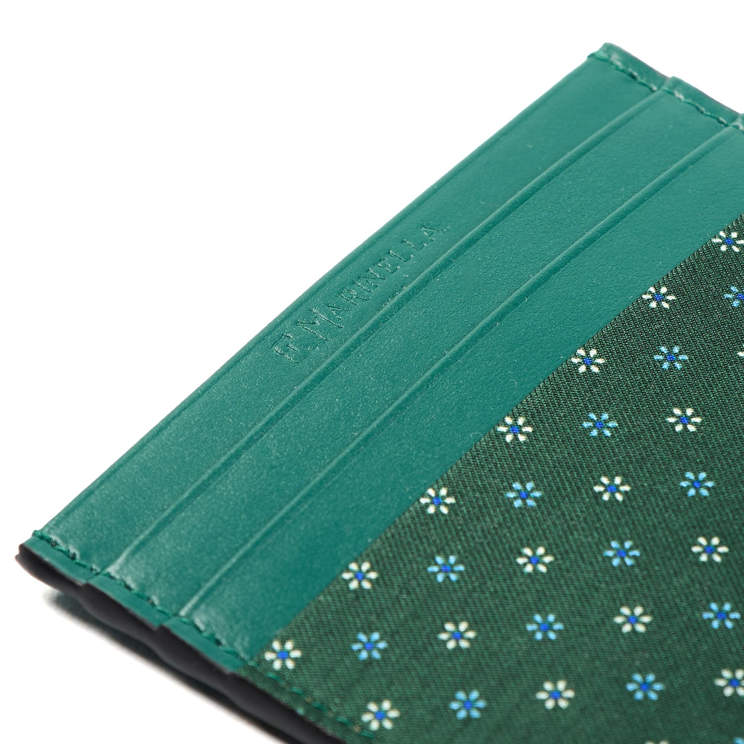 PORTACARTE DI CREDITO SETA E PELLE VERDE SCURO