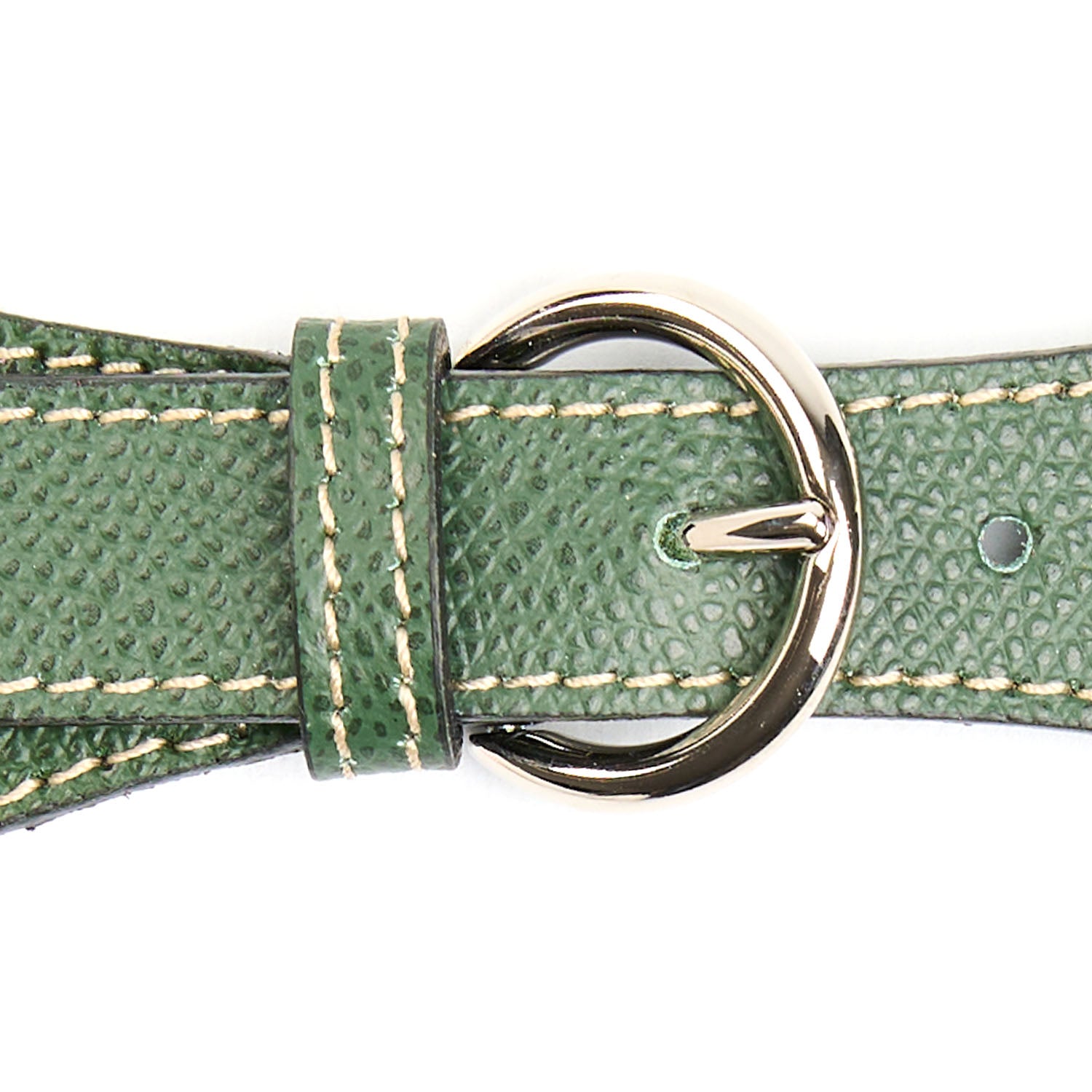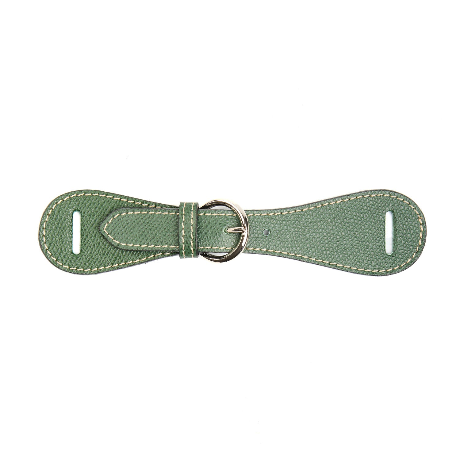 Fermafoulard in pelle palmellato, texture a grana piccola. con fibbia argentata.