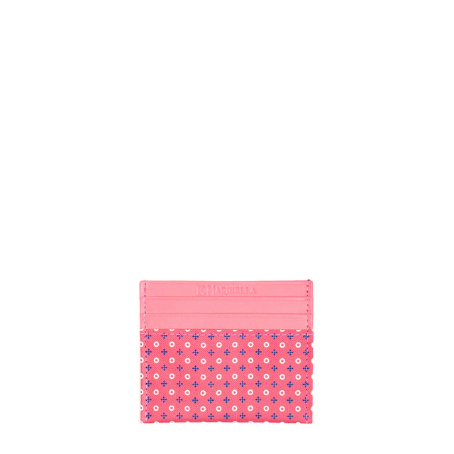 La seta microfantasia stampata a mano impreziosisce e rende unico questo piccolo accessorio comodo e compatto, arricchendone di colore e contrasti la base in pelle. Il prodotto è realizzato completamente a mano.