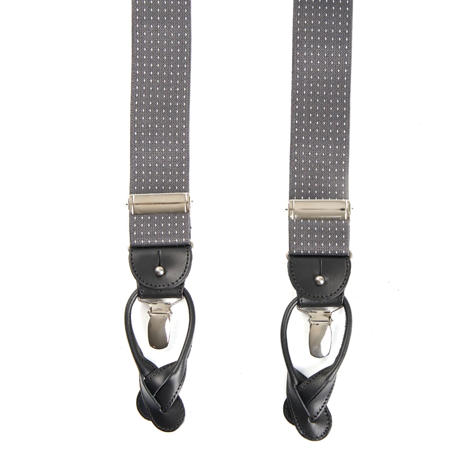 Bretelle elastiche con spalline regolabili e doppia chiusura. Indossabili sia con clip che con bottoni, sono impreziosite da una fantasia a pois.