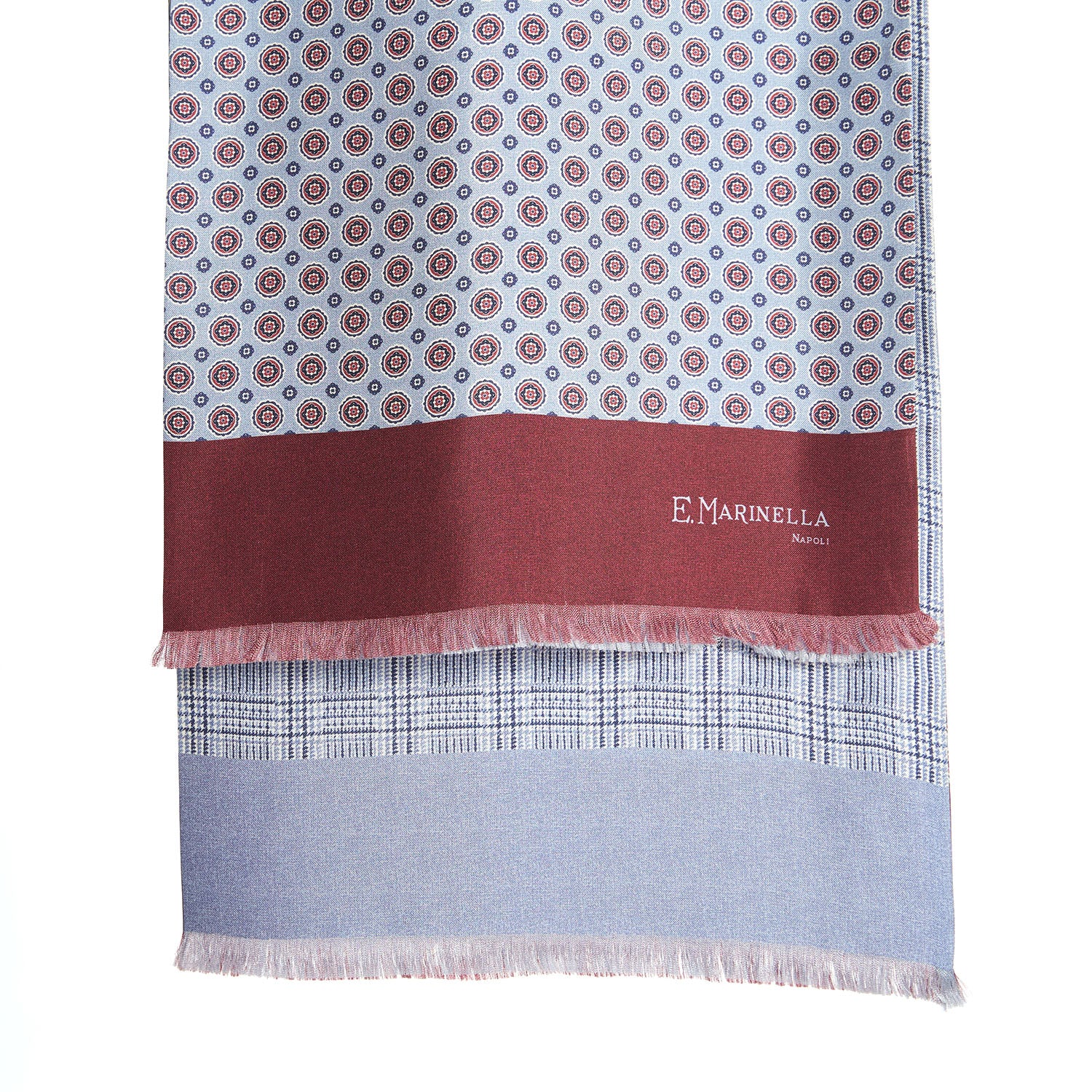 Raffinata sciarpa tubolare in twill di seta in versione double con due fantasie a contrasto per dare un tocco di originalità. Da un lato tinta unita, dall'altro con fantasia fiore e piccola frangia finale. Morbida, leggera ed elegante, da indossare tutti i giorni o, se abbinata in modo particolare, nelle occasioni speciali.
