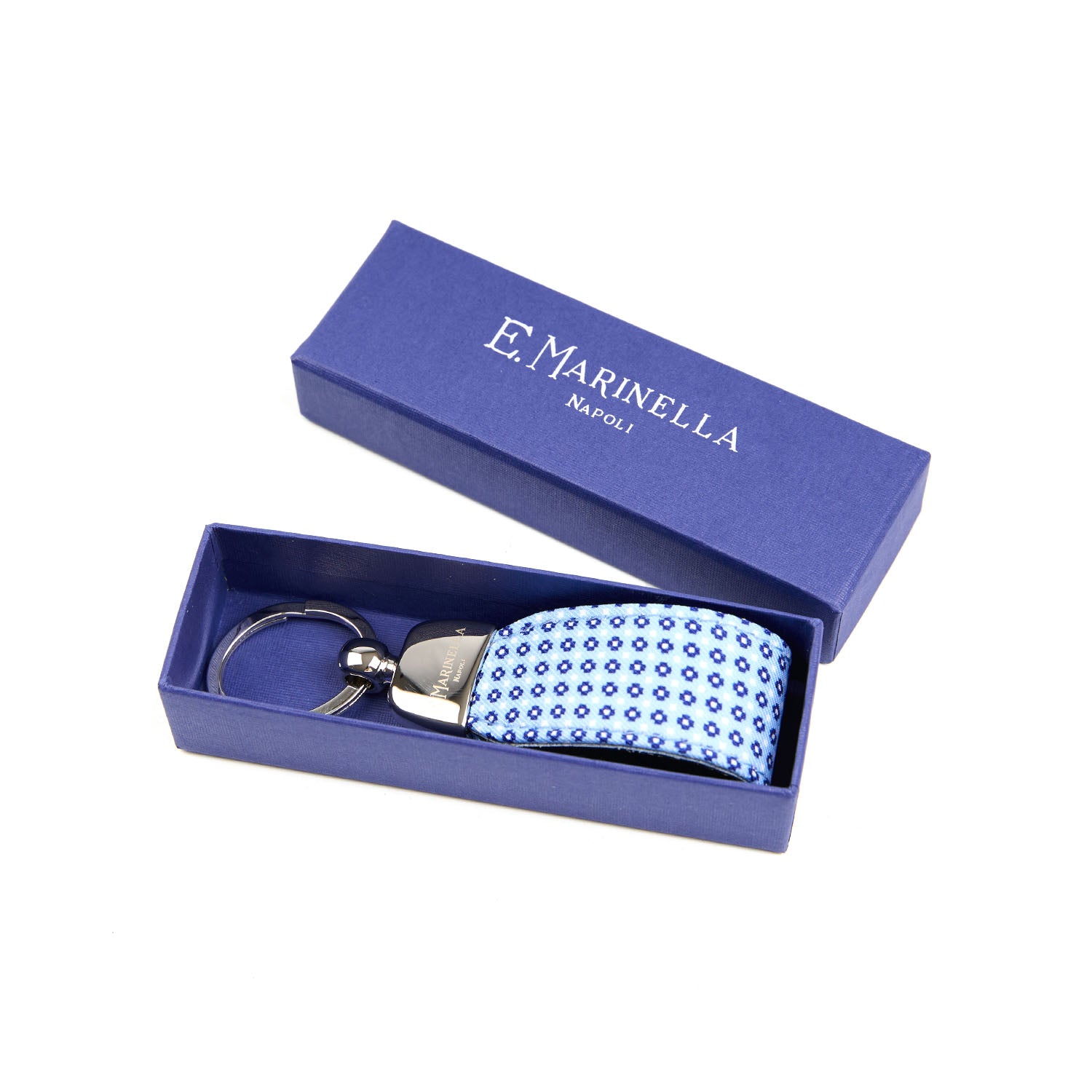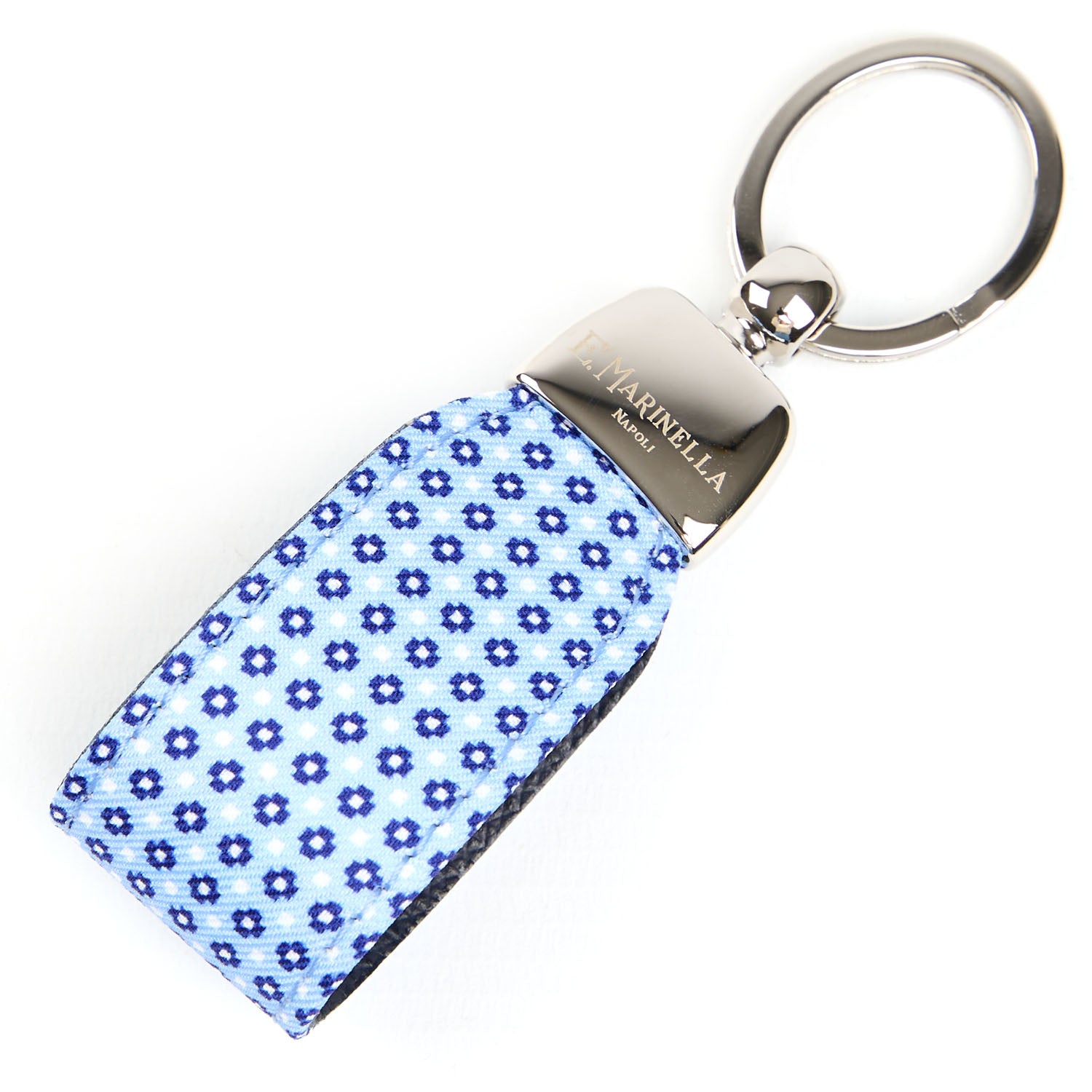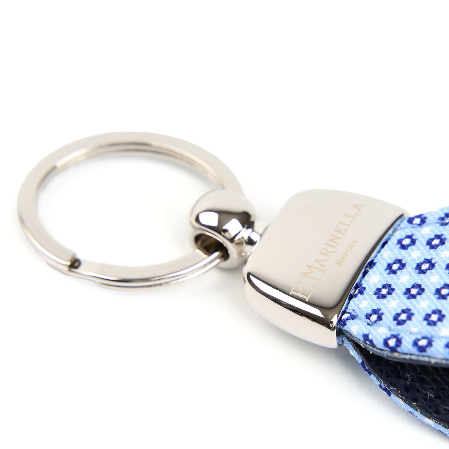 Portachiavi con anello e piccolo loop in pelle impreziosito dalla classica seta microfantasia E. Marinella.