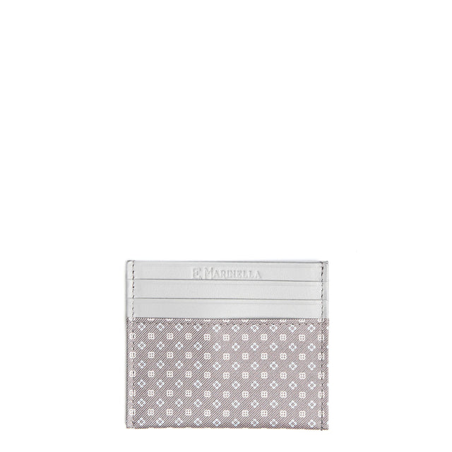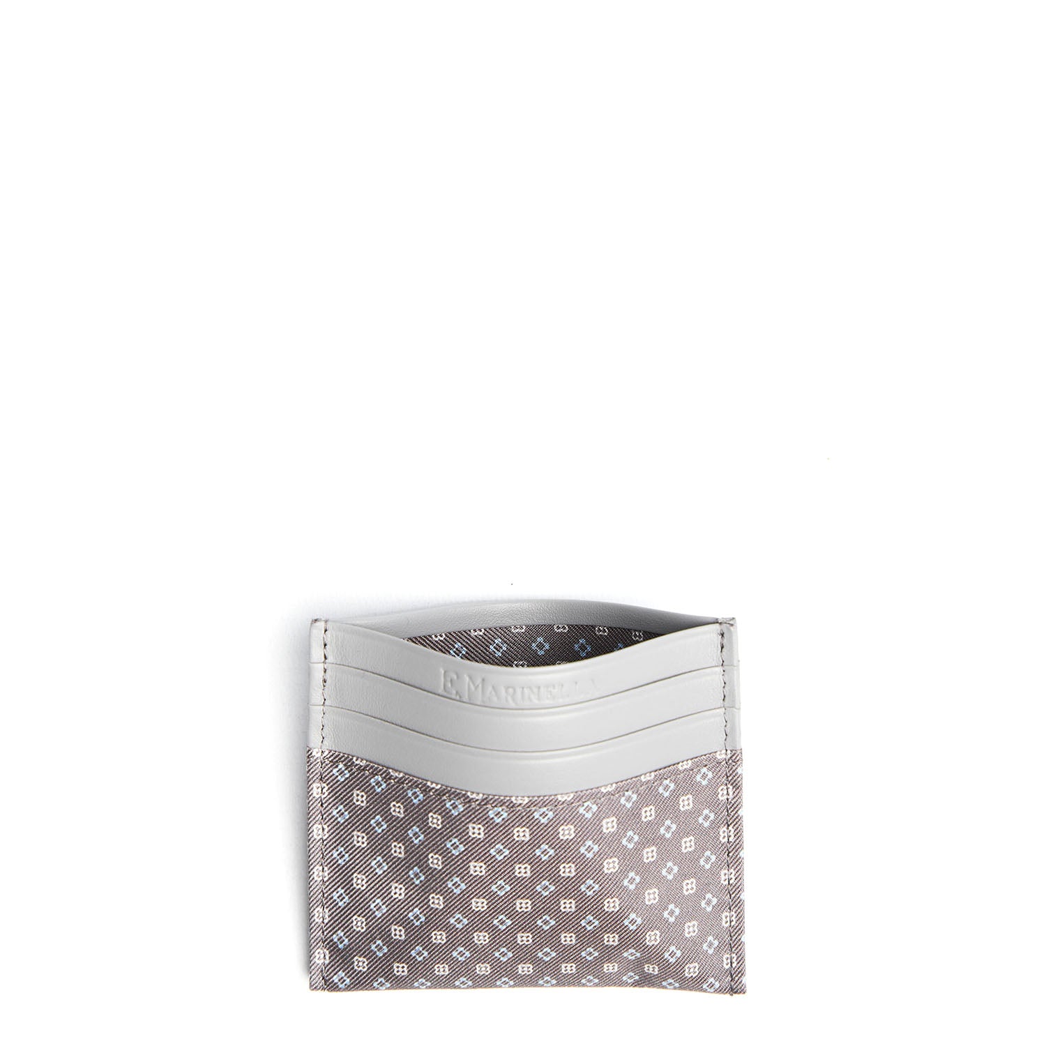 PORTACARTE DI CREDITO SETA E PELLE GRIGIO CHIARO
