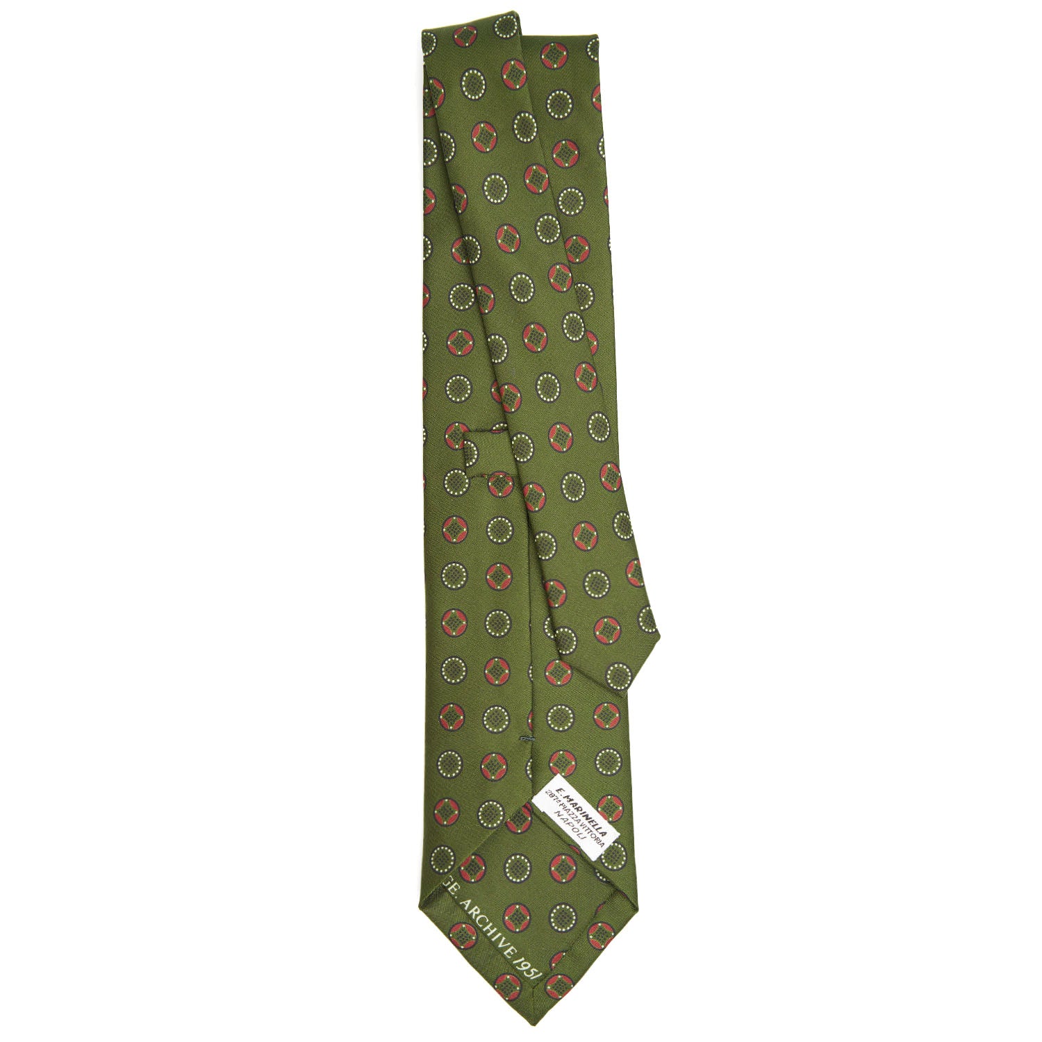 La cravatta fa parte della collezione Archivio, che propone in chiave moderna le stampe storiche dal 1930 al 1980. Le fantasie degli anni '50 sono caratterizzate da fantasie più piccole e fitte. Fa il suo ingresso il "fiorellino", elemento tipico delle fantasie Marinella. Un ritorno anche del paisley nella versione più tradizionale talvolta accostato apiccoli fiorellini, spesso tono su tono. Una cravatta classica con tocchi di originalità.