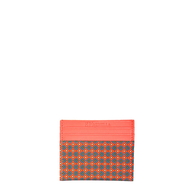 PORTACARTE DI CREDITO SETA E PELLE ARANCIONE