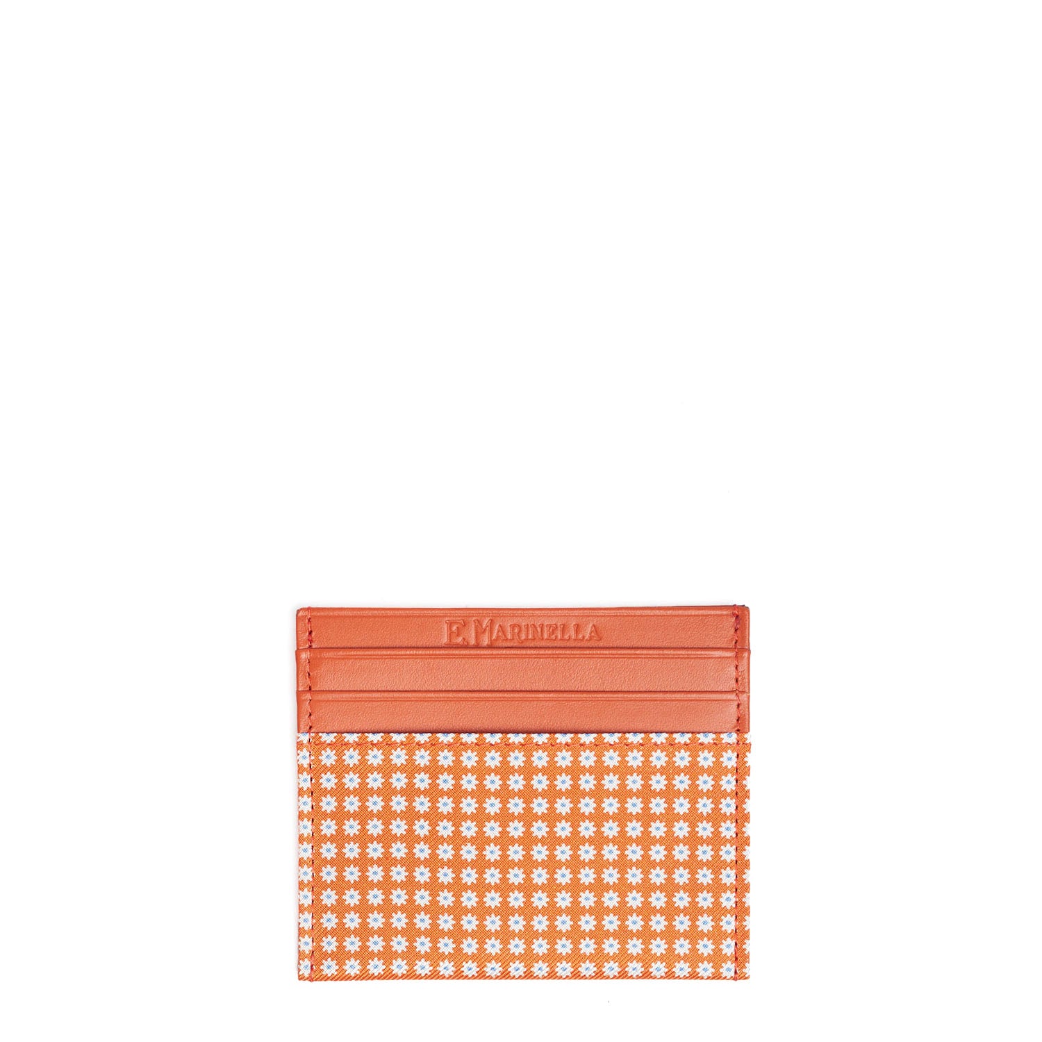 PORTACARTE DI CREDITO SETA E PELLE ARANCIONE