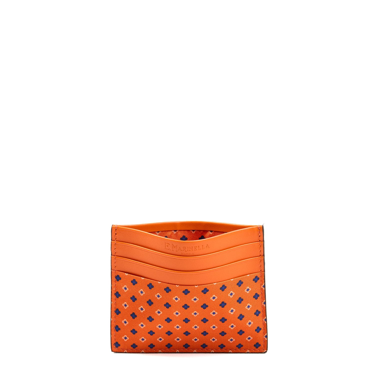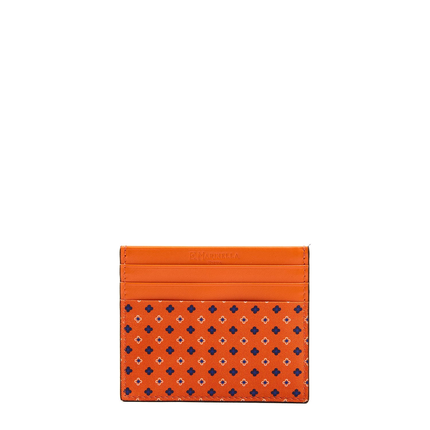 PORTACARTE DI CREDITO SETA E PELLE ARANCIONE