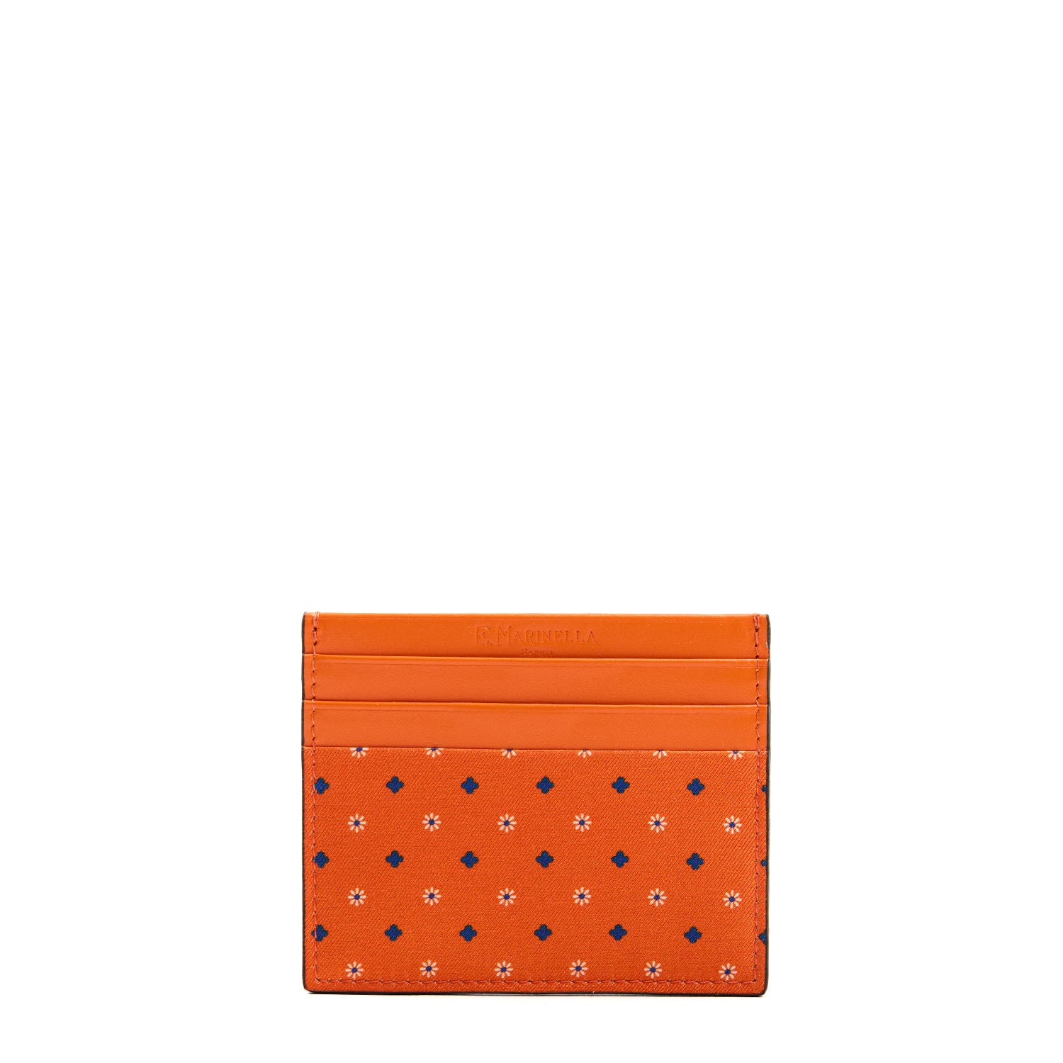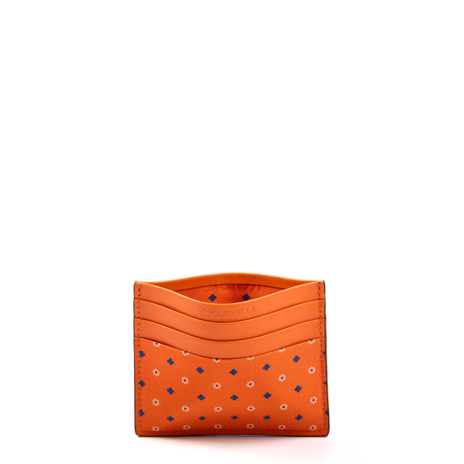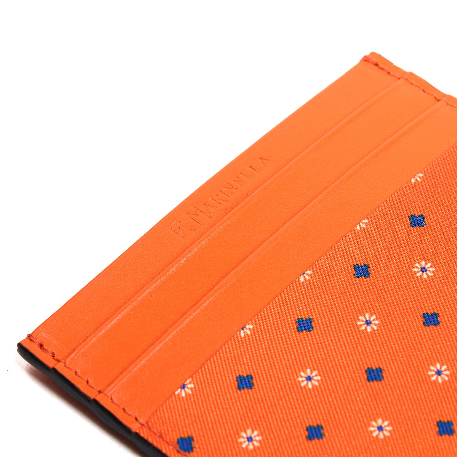 PORTACARTE DI CREDITO SETA E PELLE ARANCIONE
