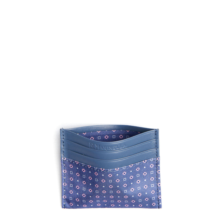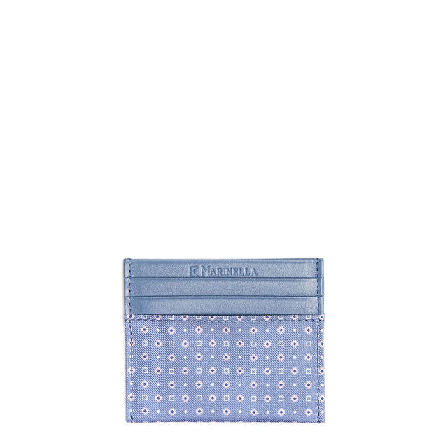 PORTACARTE DI CREDITO SETA E PELLE AZZURRO POLVERE