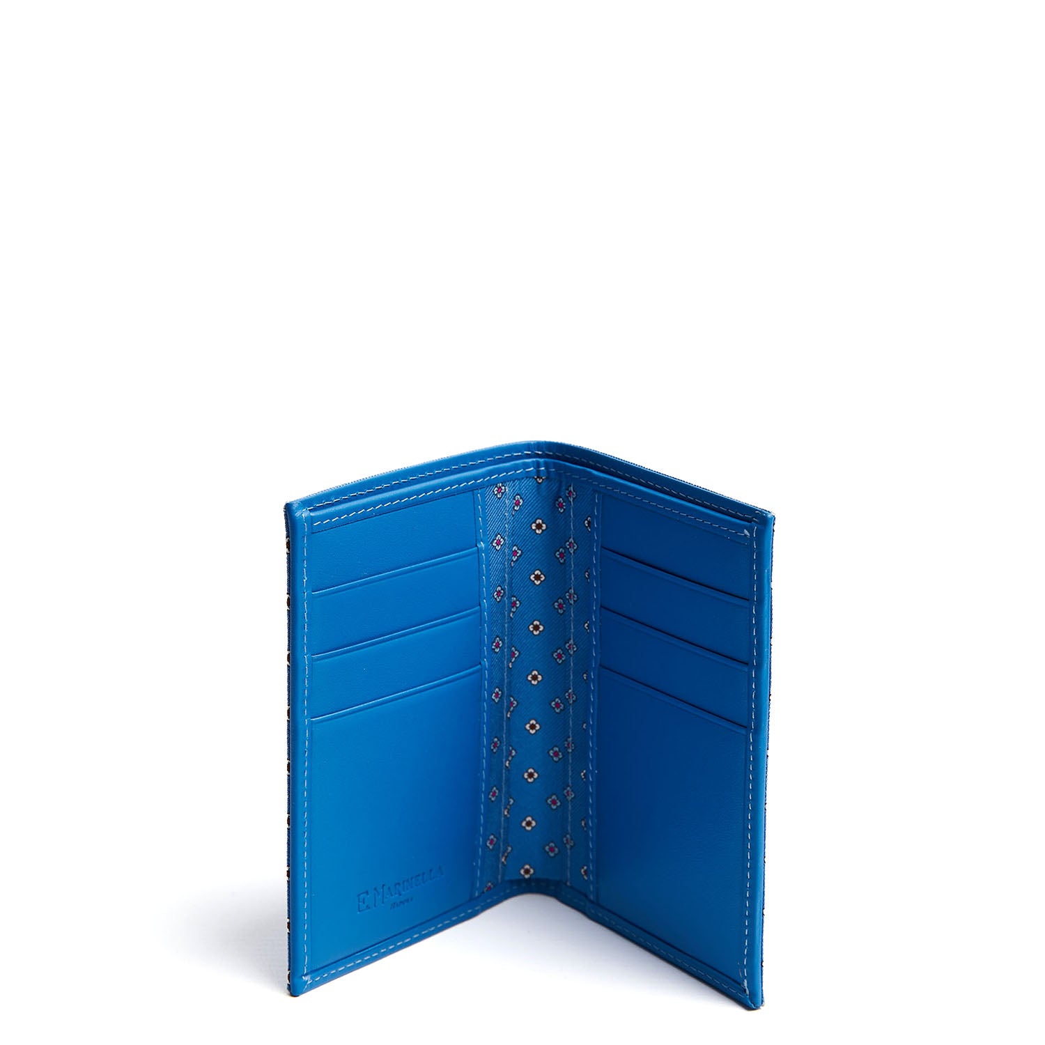 Portafoglio in pelle e seta microfantasia con classico disegno E. Marinella.