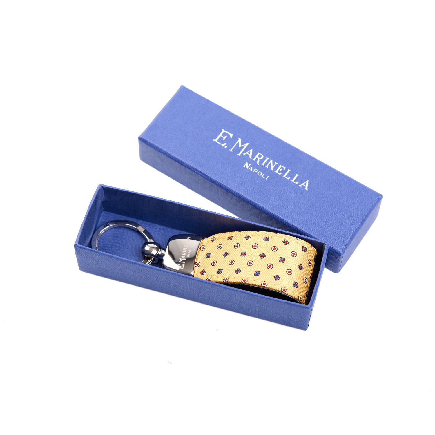 Ogni articolo E. Marinella è presentato in un’elegante confezione regalo con la sua iconica scatola rigida e busta in carta logata.