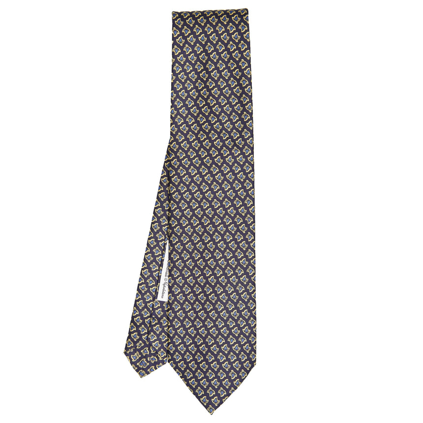 This tie is part of the Archivio collection, which offers. in a modern way, historical prints from the 1930s to the 1980s on lighter weight silk, as it was at the beginning of the century. The patterns of the 1930s are characterized by large, "caramelloni" designs and sober colors. A tie with a retro taste but a contemporary spirit. 3 fold tie