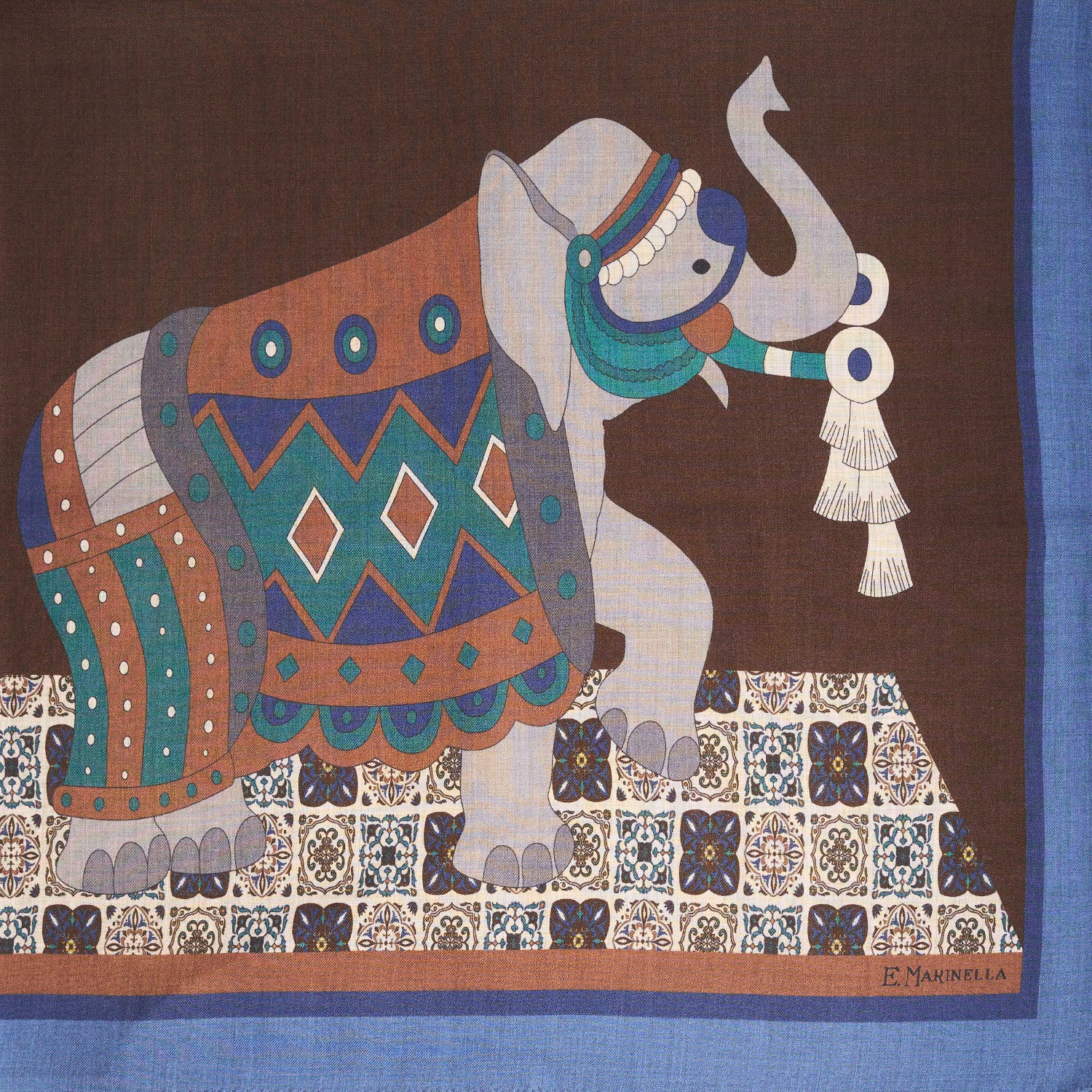 BLUETTE AND DARK BROWN WIDE WOOL SCARF