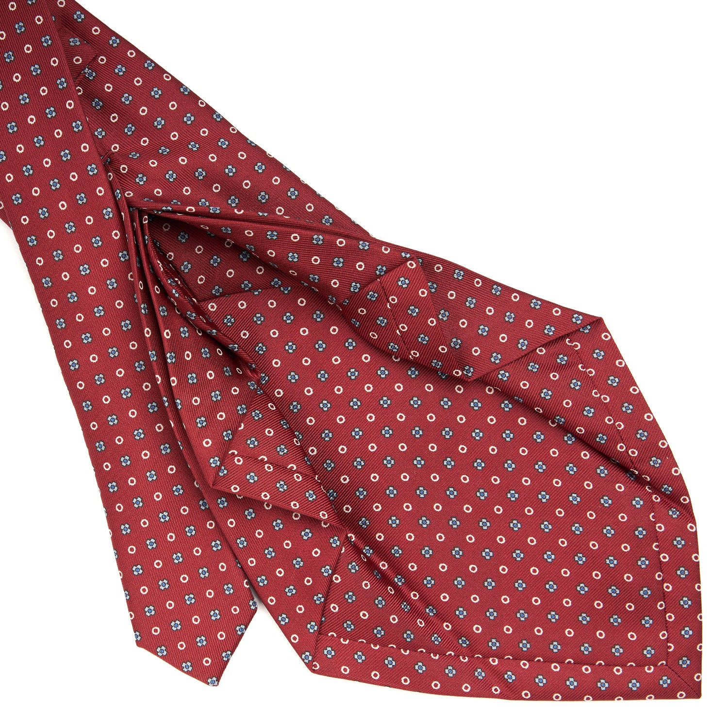 The seven-fold tie from E.Marinella is a completely artisanal product. from the hand-printing of the silk. to individual cutting of each piece of fabric. to the closing of the finished product. This is a particularly precious tie. because of the greater amount of silk used: the silk square is folded on itself seven times. giving the tie a fuller consistency. even at the height of the knot. and weightiness.