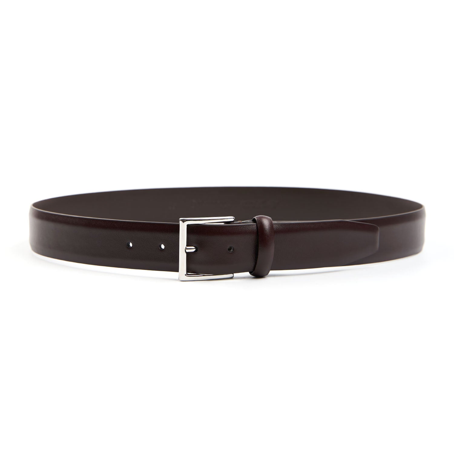 Classic belt in calfskin. Seamless design with square tip. Polished nickel-brass buckle, the strap can be shortened to the correct length.