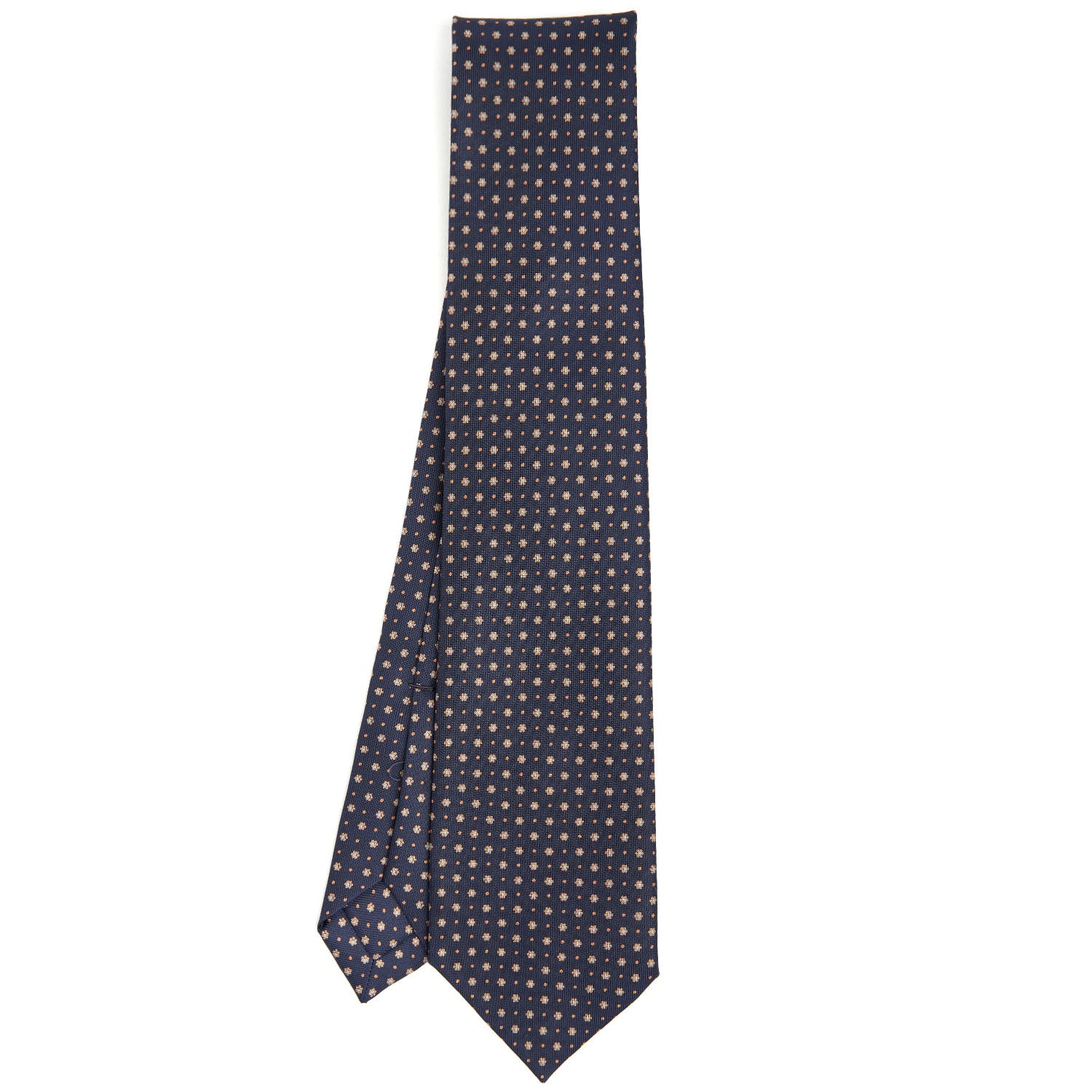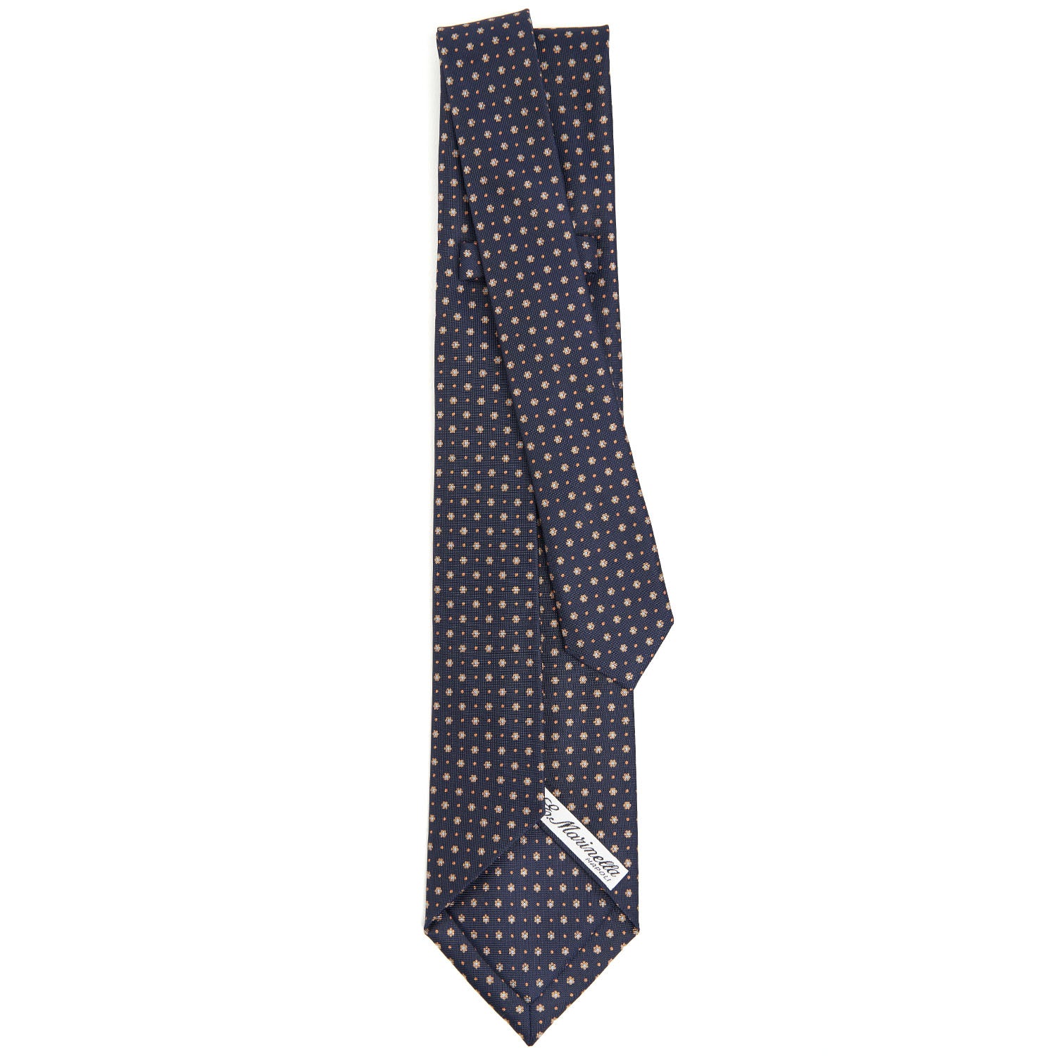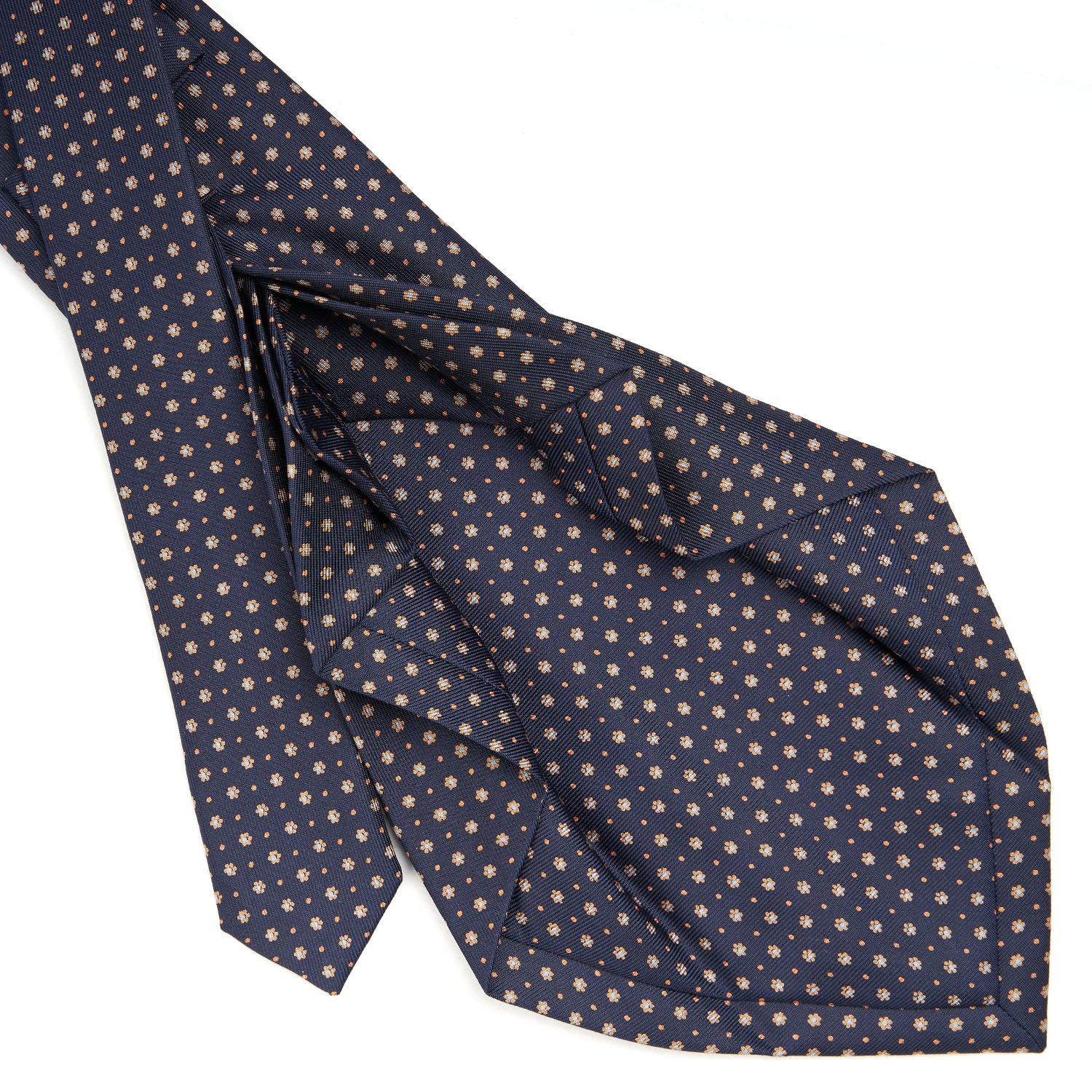 The seven-fold tie from E.Marinella is a completely artisanal product. from the hand-printing of the silk. to individual cutting of each piece of fabric. to the closing of the finished product. This is a particularly precious tie. because of the greater amount of silk used: the silk square is folded on itself seven times. giving the tie a fuller consistency. even at the height of the knot. and weightiness.