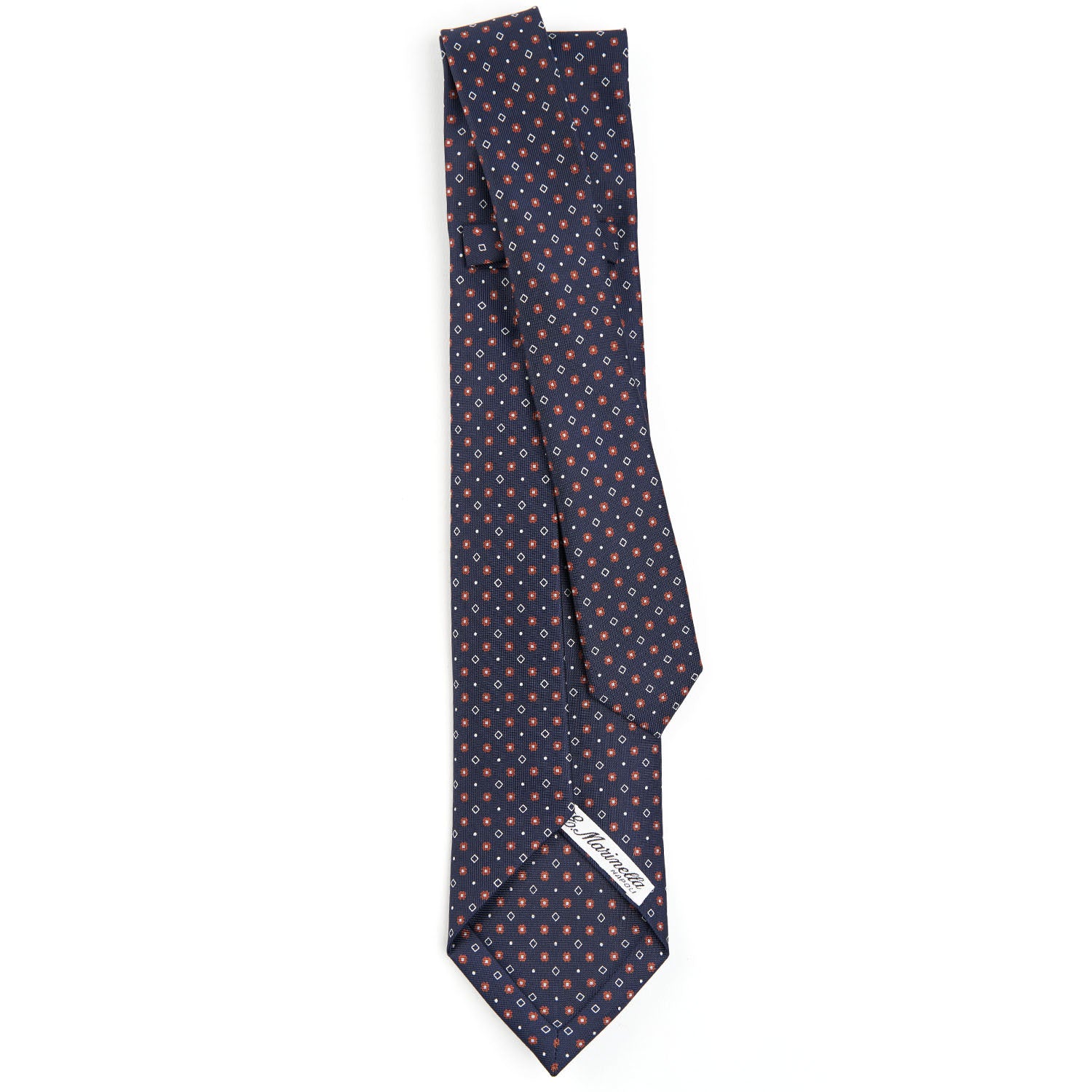 The seven-fold tie from E.Marinella is a completely artisanal product. from the hand-printing of the silk. to individual cutting of each piece of fabric. to the closing of the finished product. This is a particularly precious tie. because of the greater amount of silk used: the silk square is folded on itself seven times. giving the tie a fuller consistency. even at the height of the knot. and weightiness.