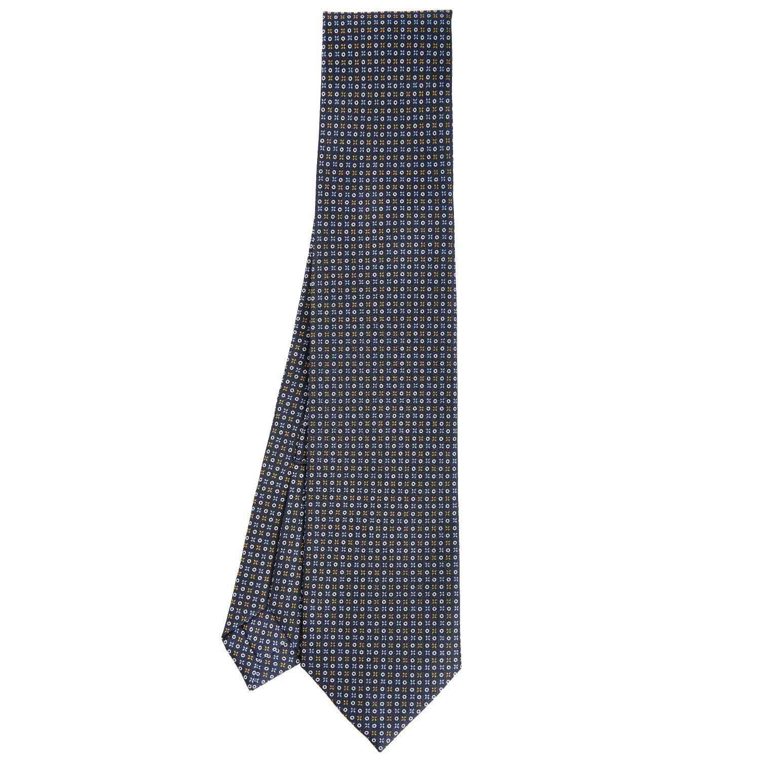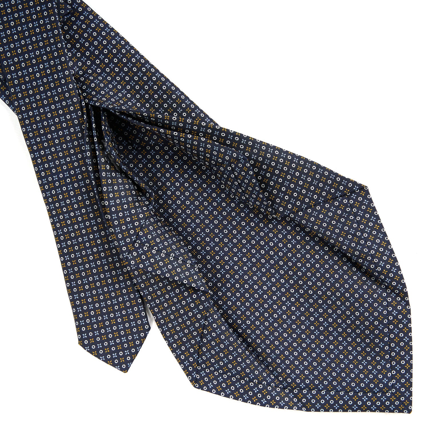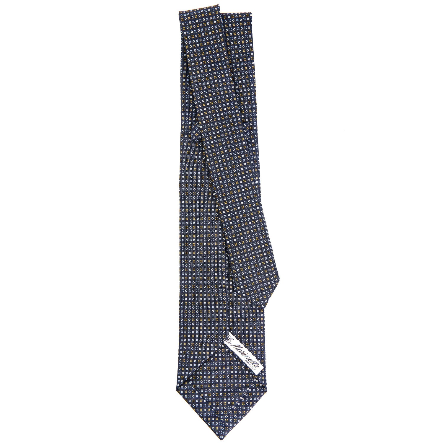 The seven-fold tie from E.Marinella is a completely artisanal product. from the hand-printing of the silk. to individual cutting of each piece of fabric. to the closing of the finished product. This is a particularly precious tie. because of the greater amount of silk used: the silk square is folded on itself seven times. giving the tie a fuller consistency. even at the height of the knot. and weightiness.