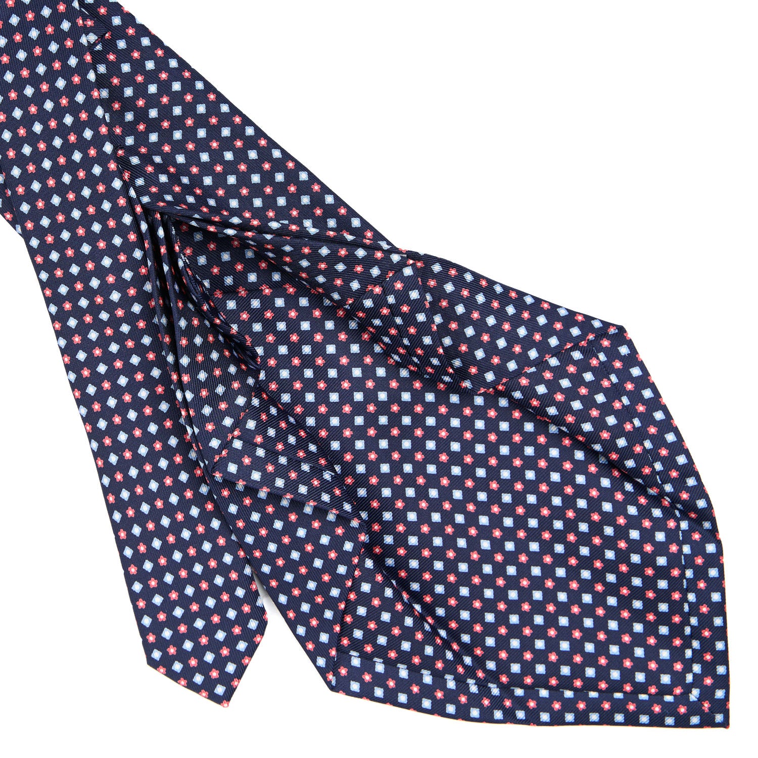 The seven-fold tie from E.Marinella is a completely artisanal product. from the hand-printing of the silk. to individual cutting of each piece of fabric. to the closing of the finished product. This is a particularly precious tie. because of the greater amount of silk used: the silk square is folded on itself seven times. giving the tie a fuller consistency. even at the height of the knot. and weightiness.