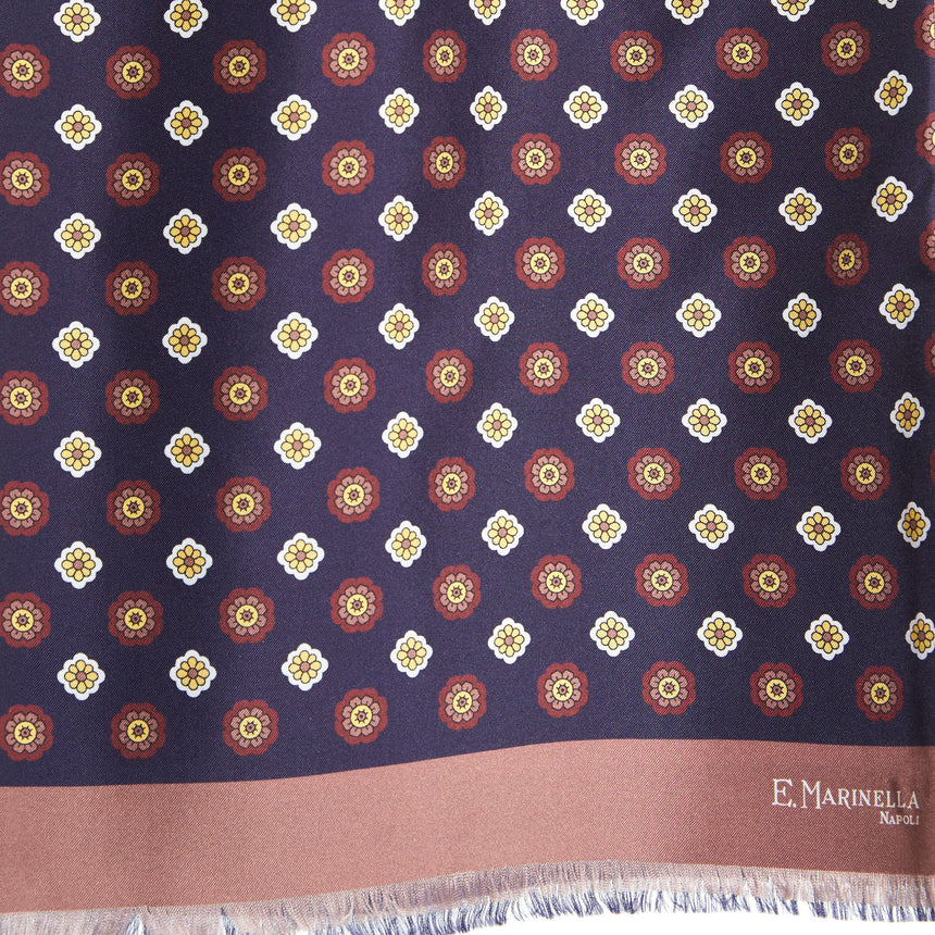 Elegant double-sided silk twill tubular scarf featuring two contrasting patterns to add a touch of originality. One side is a solid color, while the other showcases a floral design with a small fringe at the end. Soft, lightweight, and stylish, suitable for everyday wear or, when paired thoughtfully, for special occasions.