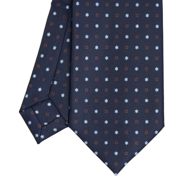 The E. Marinella tie is a hand-made product. From the hand-printed silk, to the individual cutting of each square, to the hand-closing of the final product. Characterised by rich colours, never excessive and by floral or geometric micro-designs. The tie is tipped with the same fabric as an extra detail.