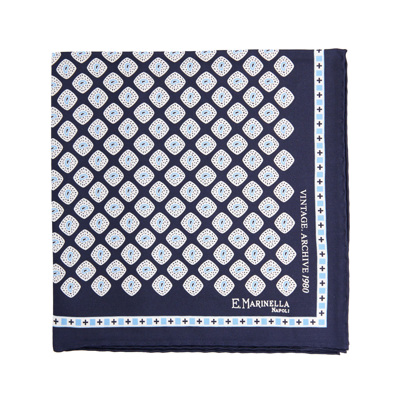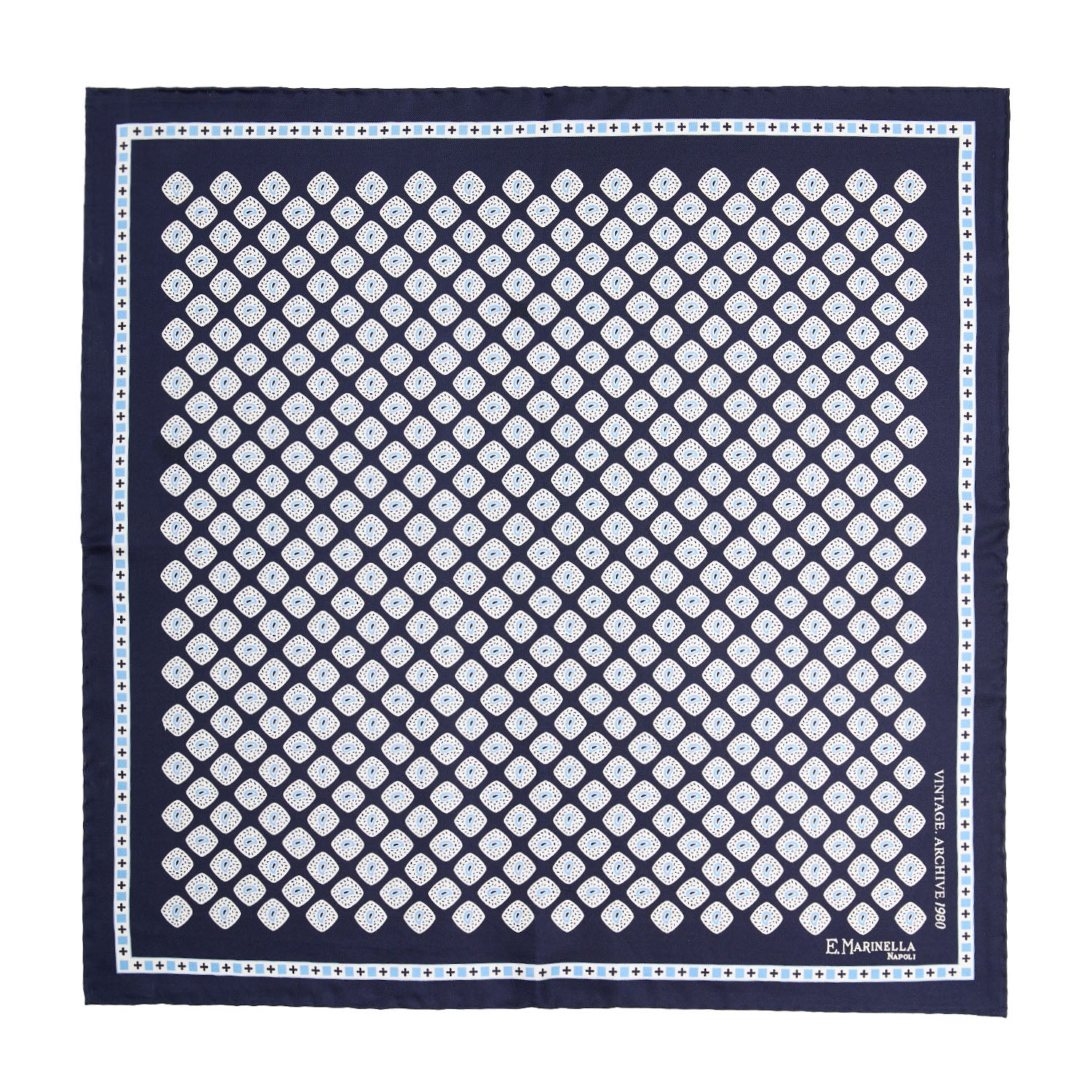DARK BLUE HAND-PRINTED SILK POCKET SQUARE