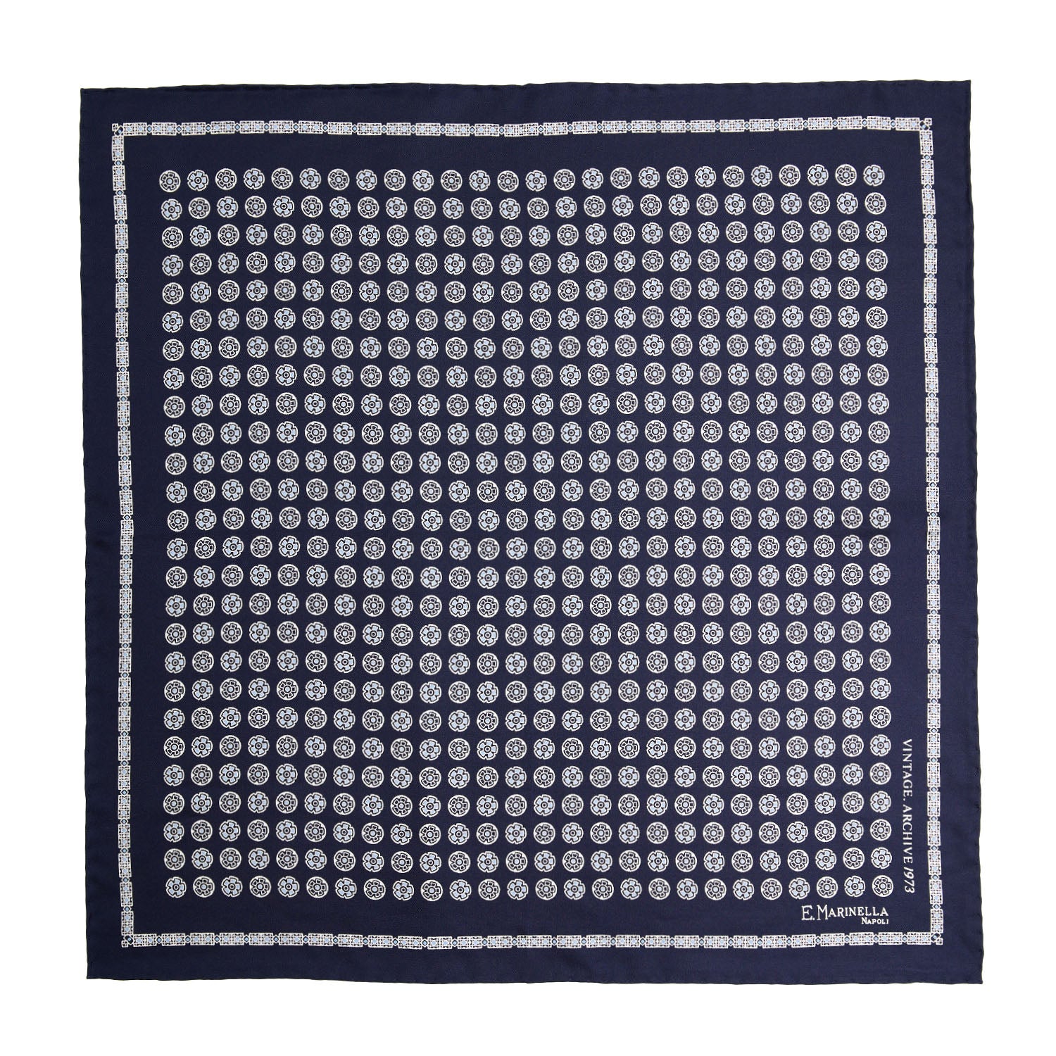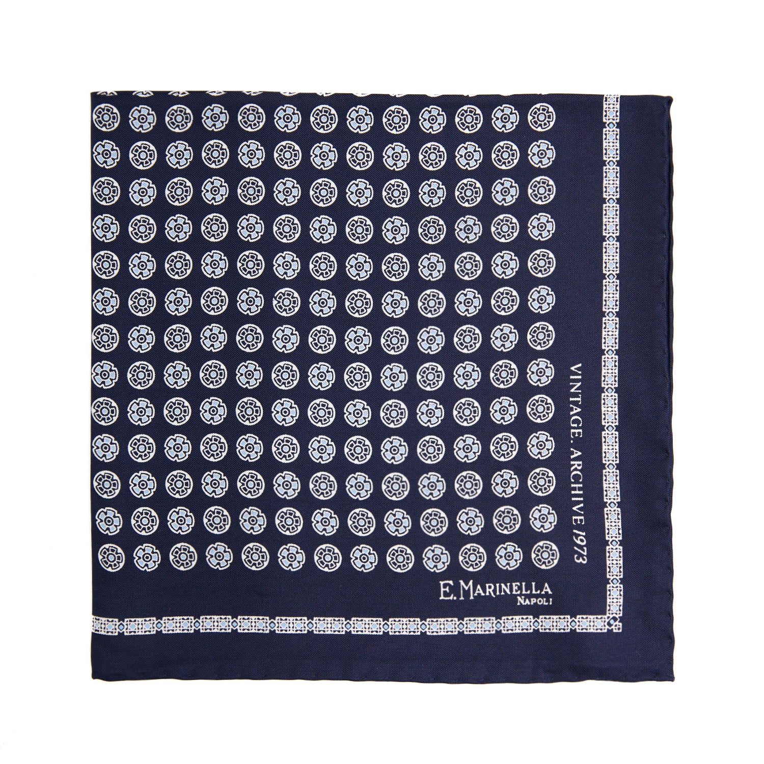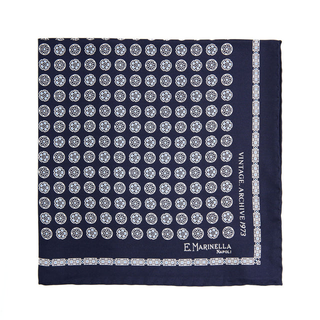 DARK BLUE HAND-PRINTED SILK POCKET SQUARE