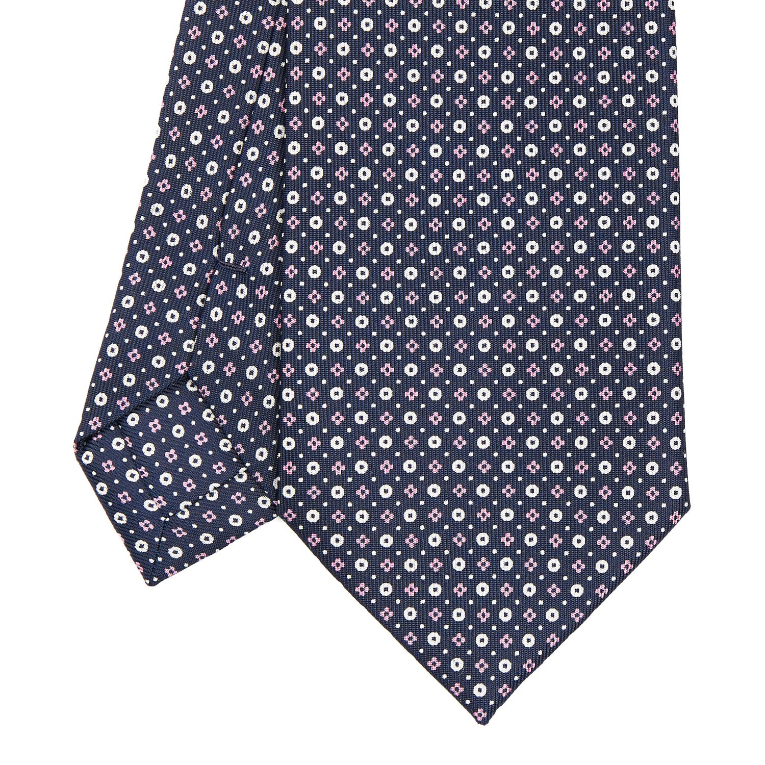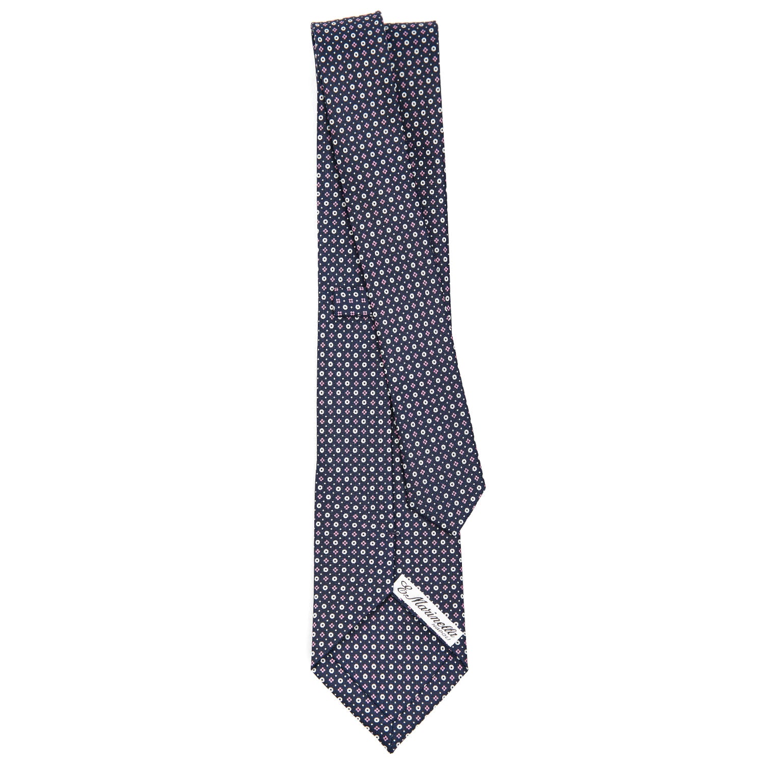 The E. Marinella tie is a hand-made product. From the hand-printed silk, to the individual cutting of each square, to the hand-closing of the final product. Characterised by rich colours, never excessive and by floral or geometric micro-designs. The tie is tipped with the same fabric as an extra detail. 3 fold tie