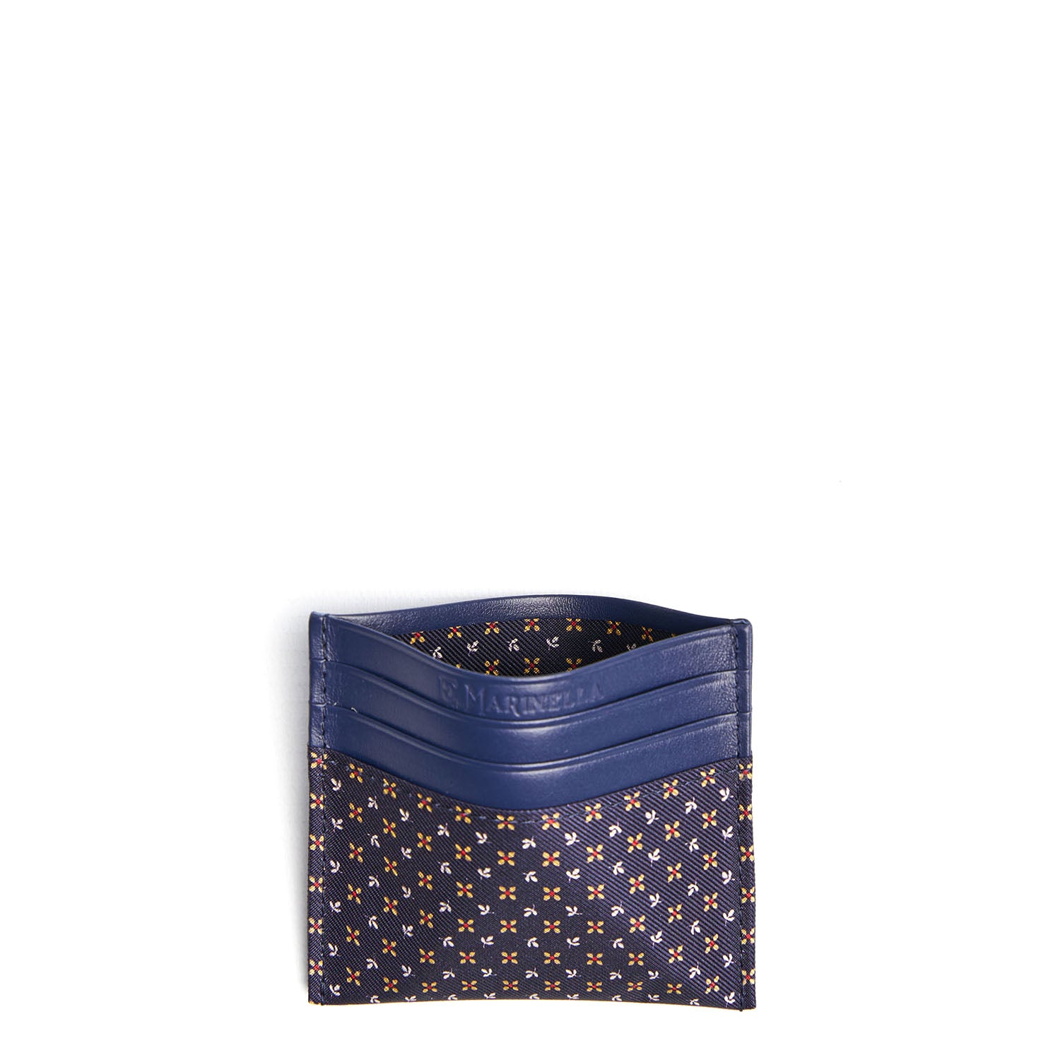 DARK BLUE SILK AND LEATHER CREDIT CARD HOLDER