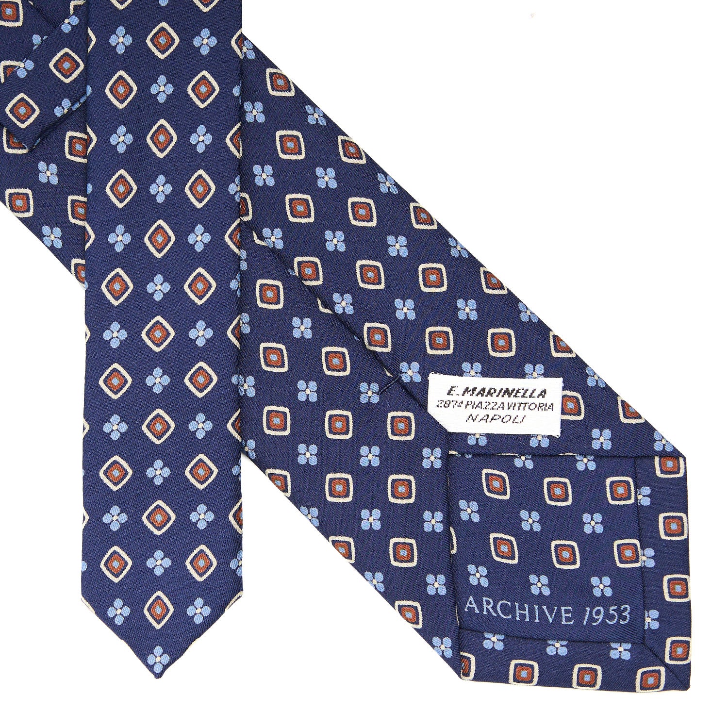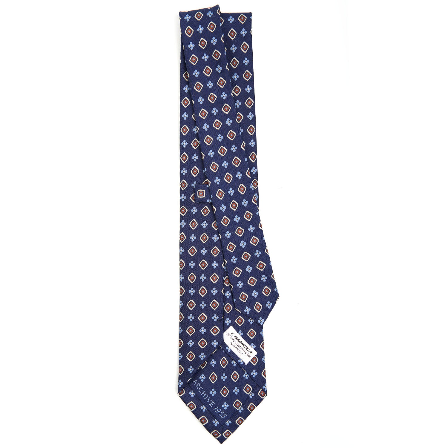 This tie is part of the Archivio collection which offers historical prints from the 1930s to the1980s in a modern way. The patterns of the 1950s are characterised by smaller, closer patterns. The "fiorellino" or little flower, a typical element of Marinella's designs, makes its entrance. There is also a return of paisley sometimes combined with small flowers, often tone on tone. A classic tie with touches of originality.