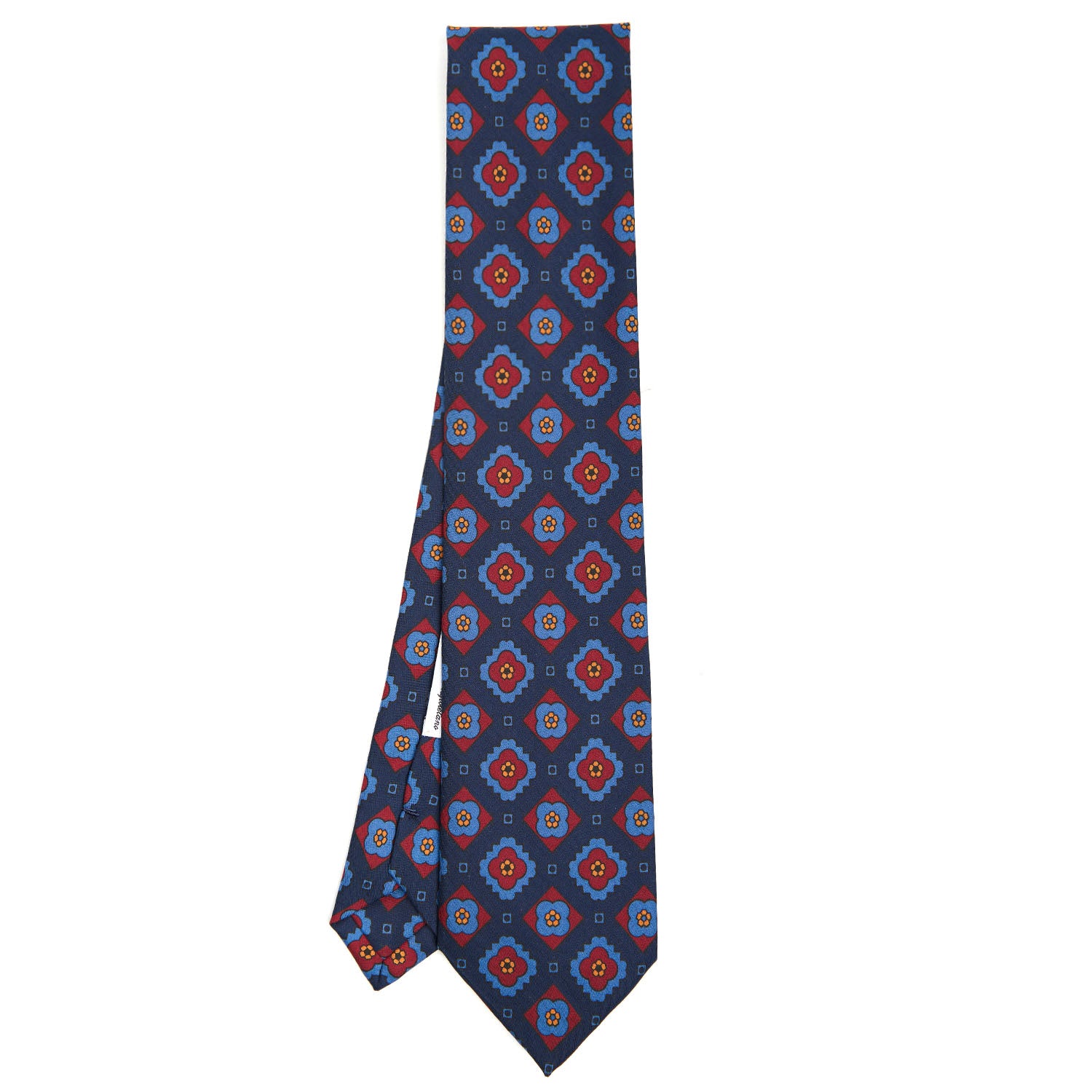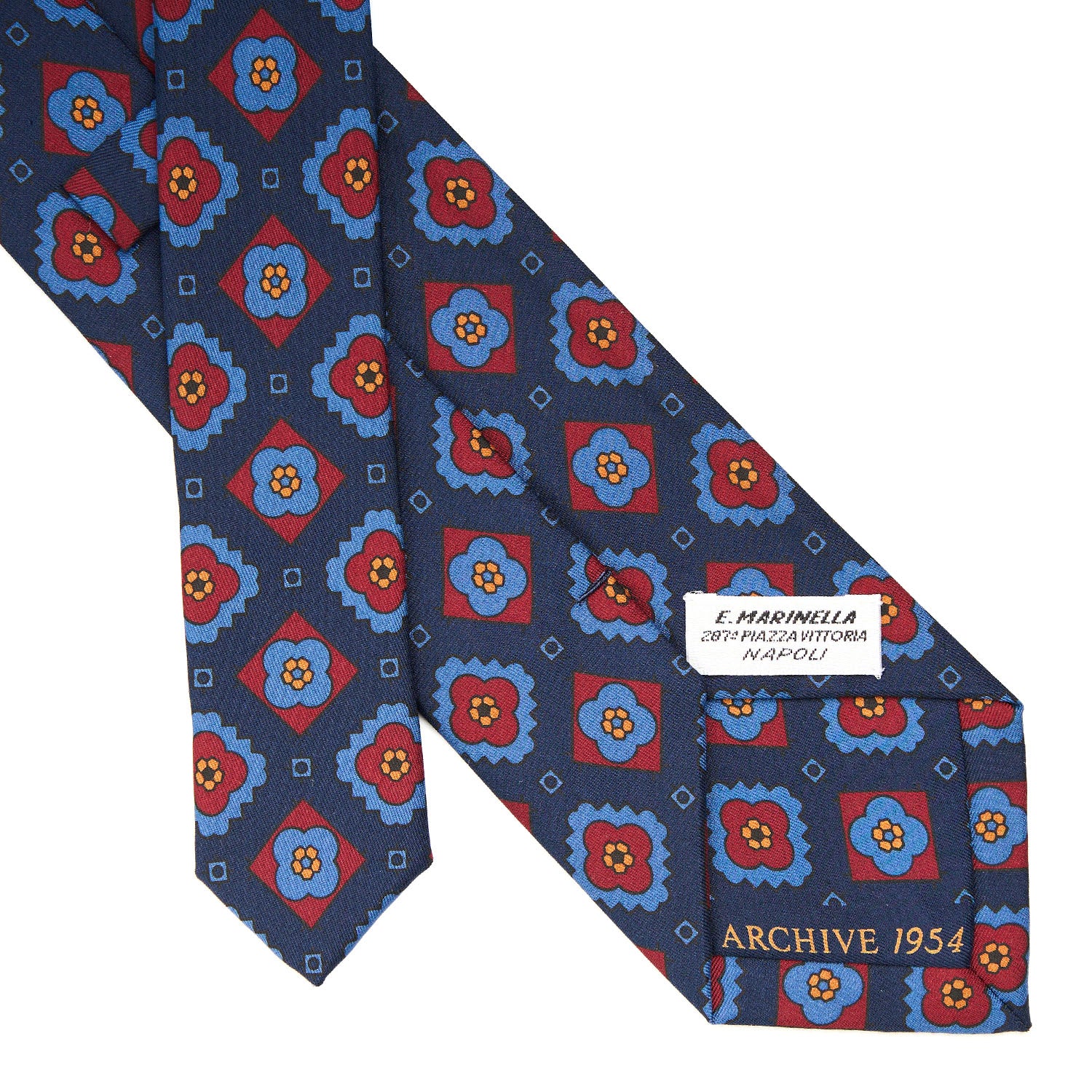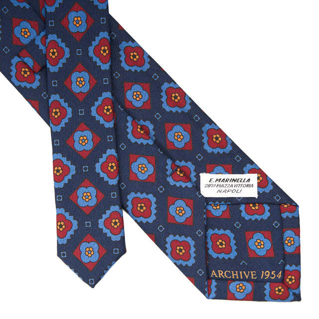 This tie is part of the Archivio collection which offers historical prints from the 1930s to the1980s in a modern way. The patterns of the 1950s are characterised by smaller, closer patterns. The "fiorellino" or little flower, a typical element of Marinella's designs, makes its entrance. There is also a return of paisley sometimes combined with small flowers, often tone on tone. A classic tie with touches of originality.