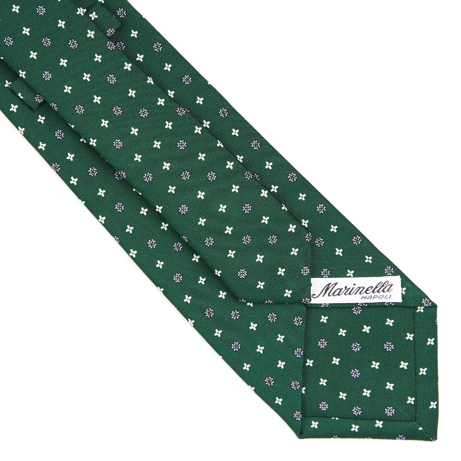 The E. Marinella tie is a hand-made product. From the hand-printed silk, to the individual cutting of each square, to the hand-closing of the final product. Characterised by rich colours, never excessive and by floral or geometric micro-designs. The tie is tipped with the same fabric as an extra detail. 3 fold tie