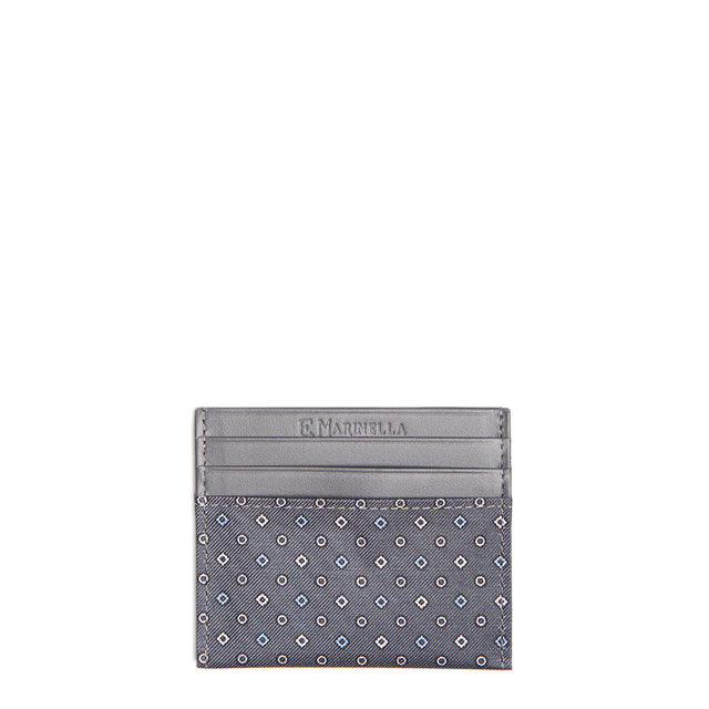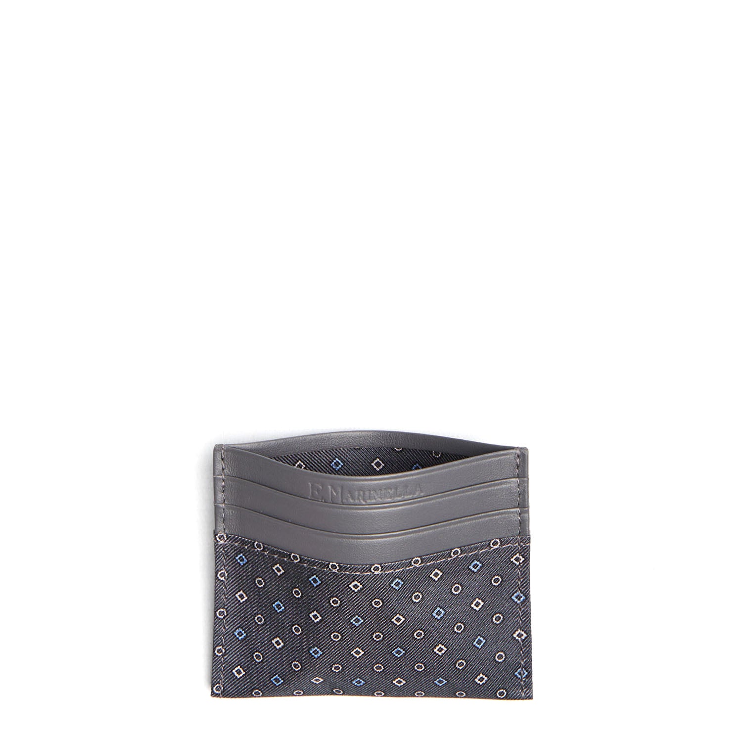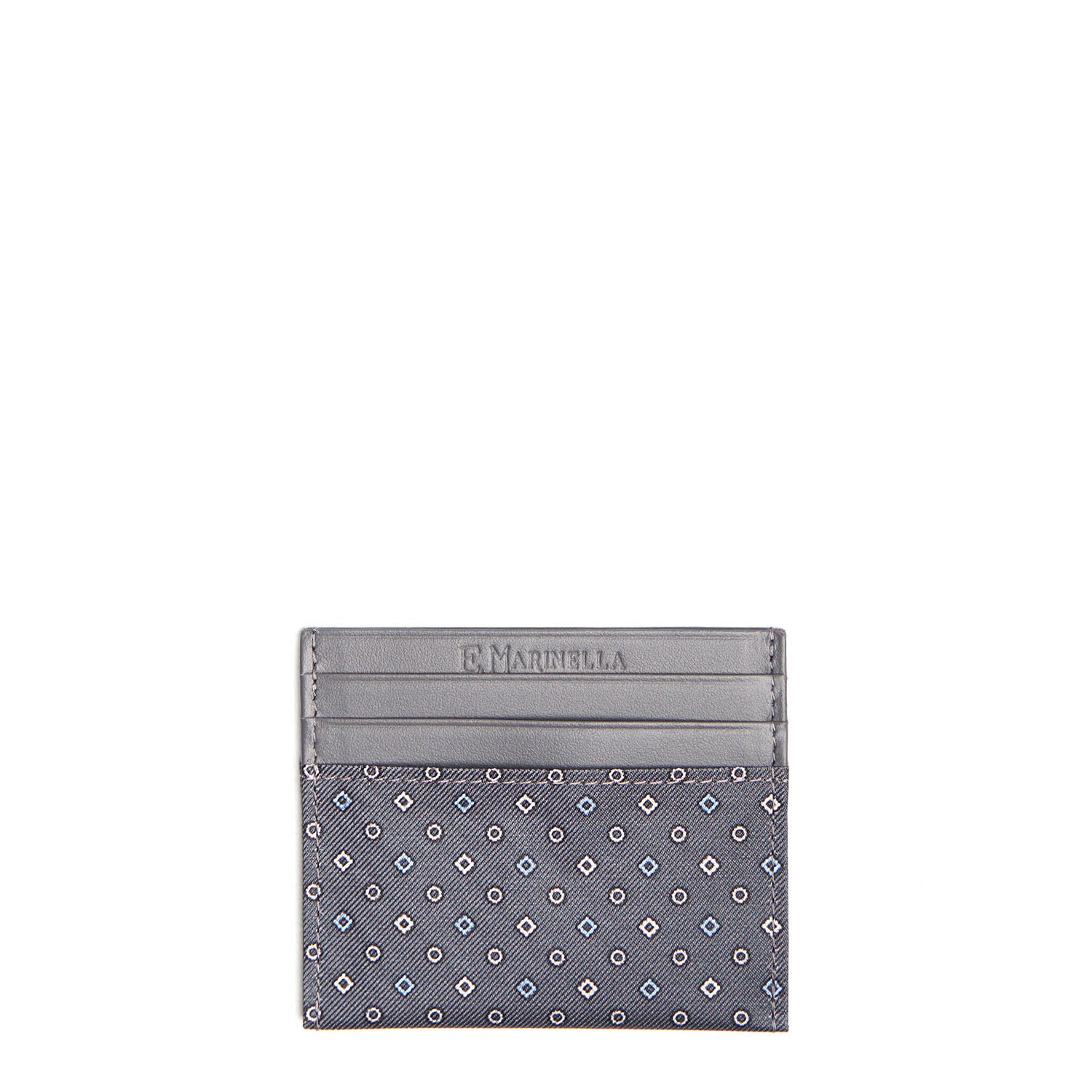 DARK GREY LEATHER AND SILK CREDIT CARD HOLDER