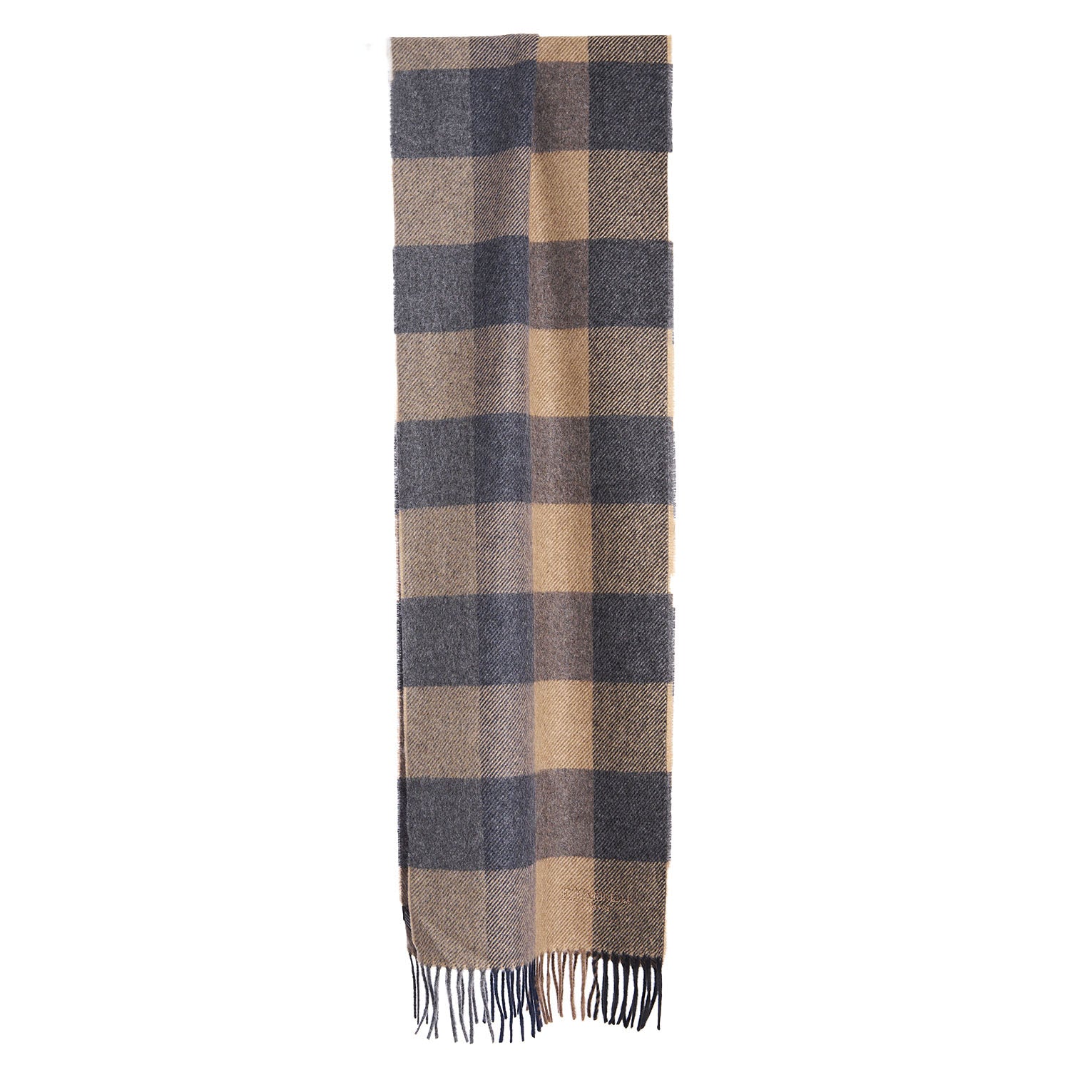 GREY AND BEIGE CASHMERE PLAID SCARF