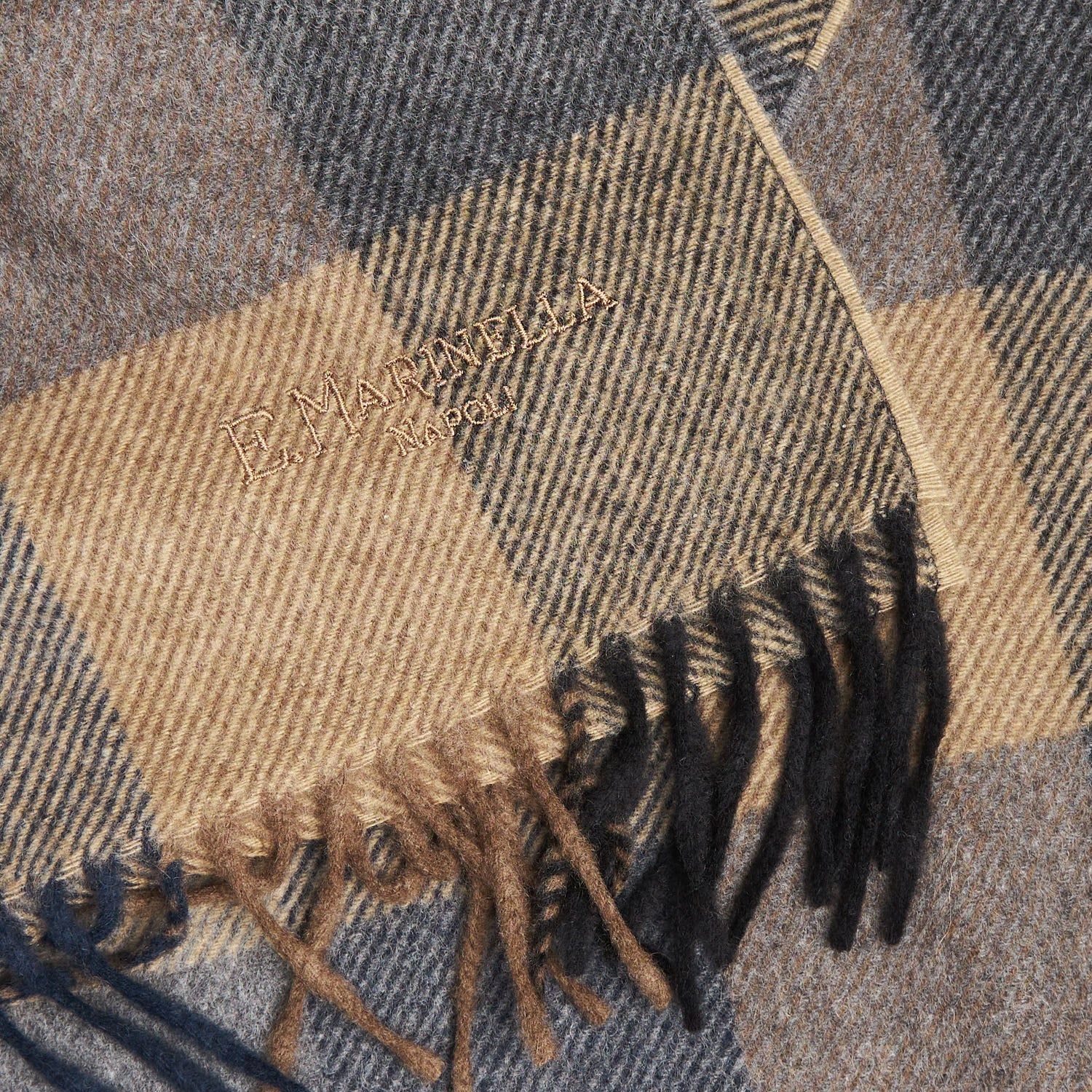 Pure cashmere scarf with contrasting check design and fringe finial. Designed in a traditional style to be paired with business or casual outfits during the cold winter months. Made in Italy