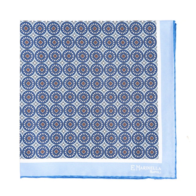 LIGHT BLUE HAND-PRINTED SILK POCKET SQUARE