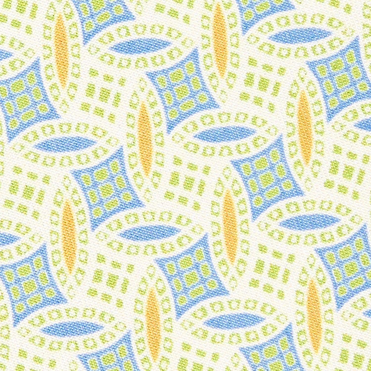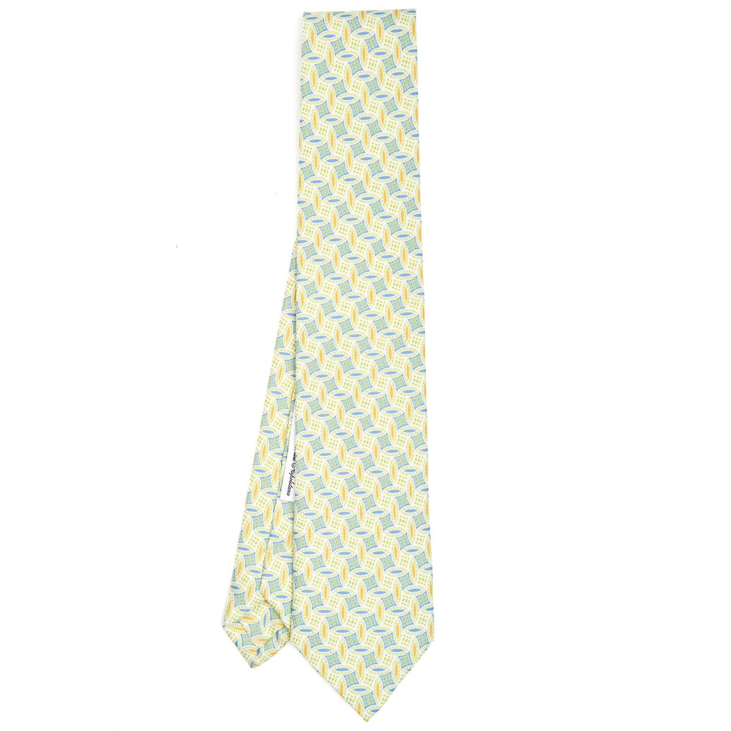 This tie is part of the Archivio collection. which offers historical prints from the 1930s to the 1980s in a modern way. The 1970s are characterised by more lively and busy motifs,sometimes even baroque. The colors are light with splashes of orange, bright red and white. A tie with an assertive character.