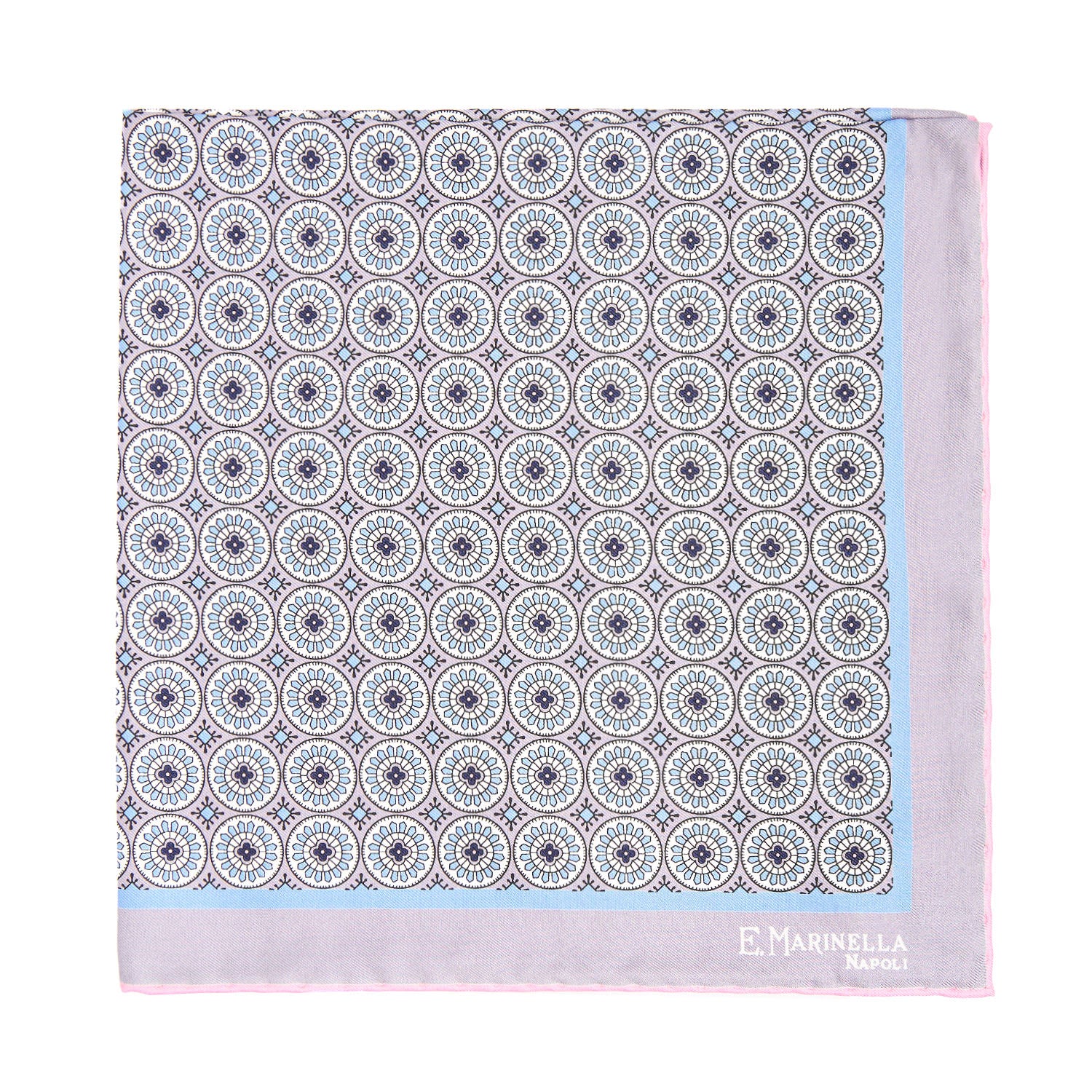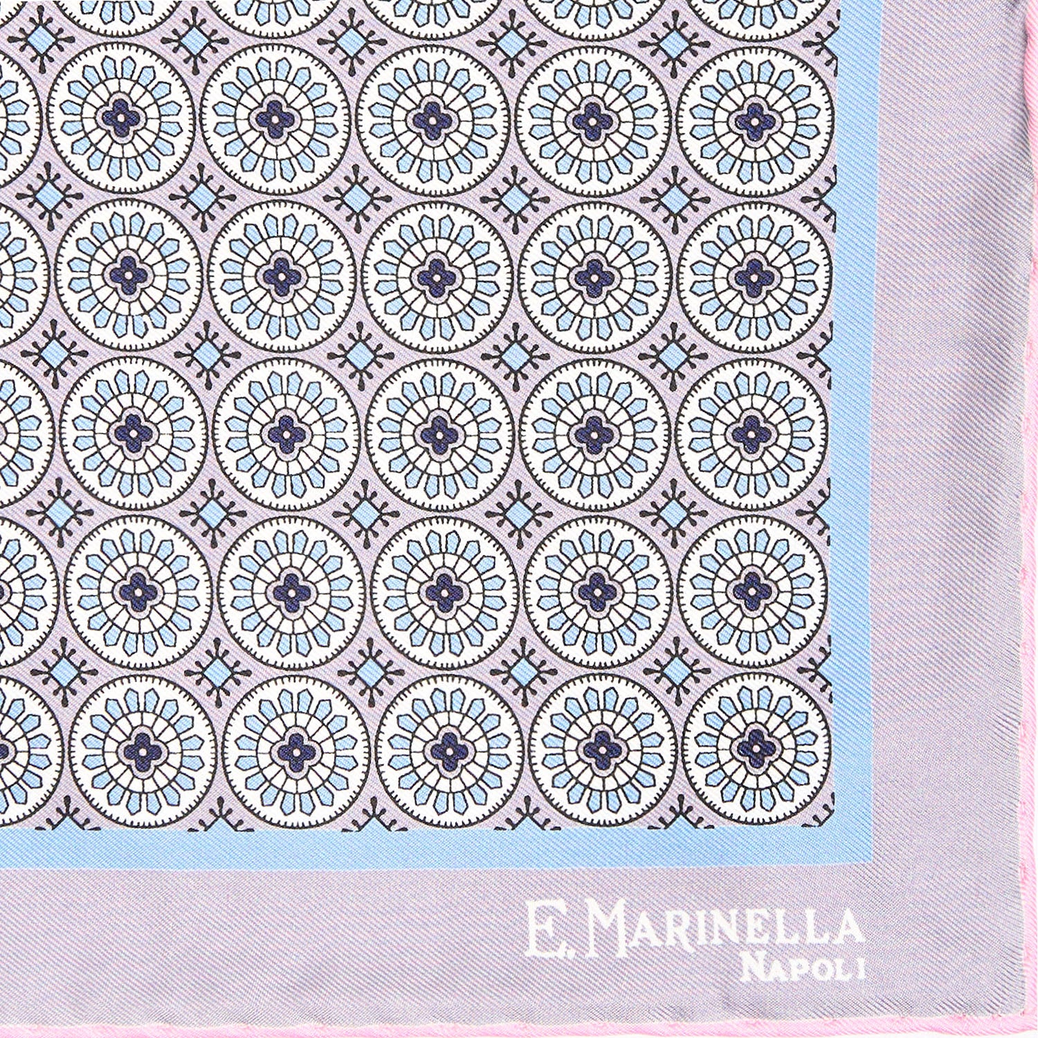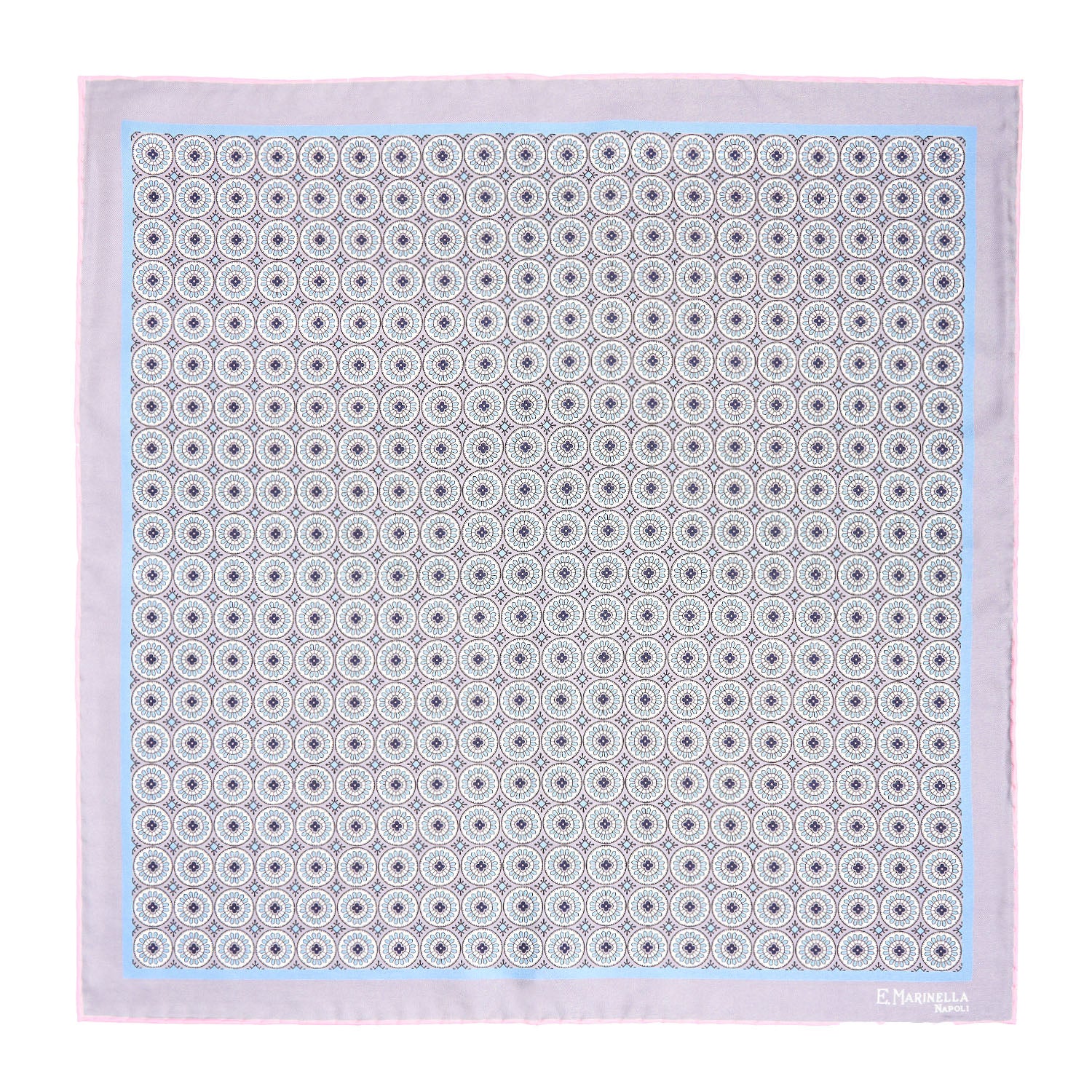 LIGHT GREY HAND-PRINTED SILK POCKET SQUARE