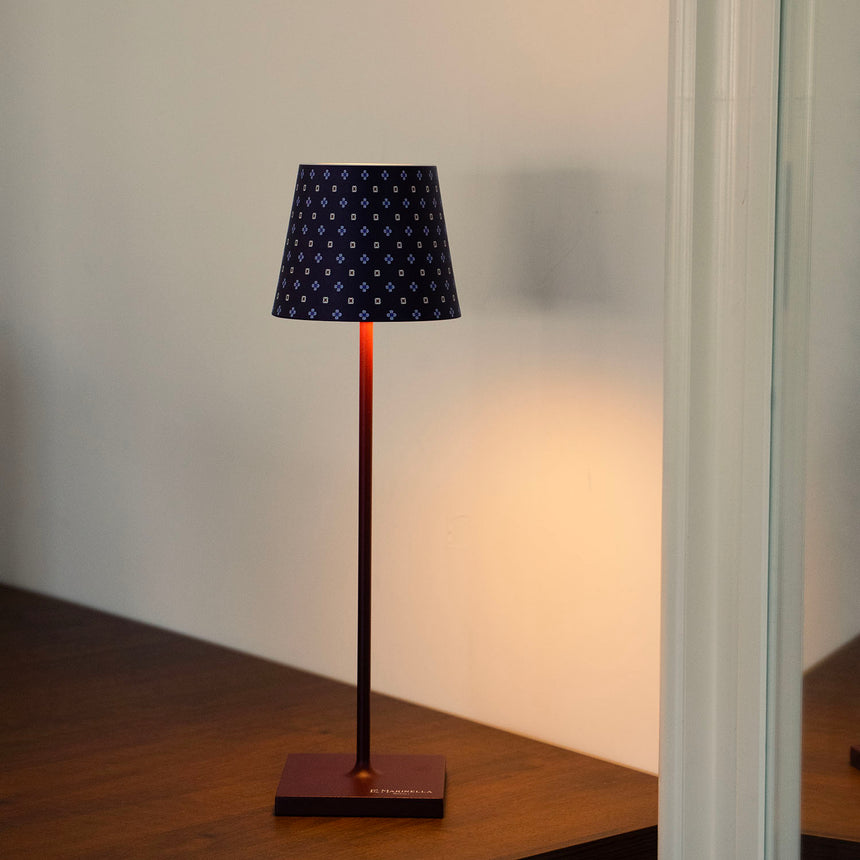 Discover the Poldina x E.Marinella, an elegant cordless lamp that combines the iconic design of E.Marinella with the innovation of Zafferano. Featuring the iconic Blu E.Marinella pattern, this cordless lamp, available in limited edition, is the perfect accessory for those seeking versatile and refined lighting.