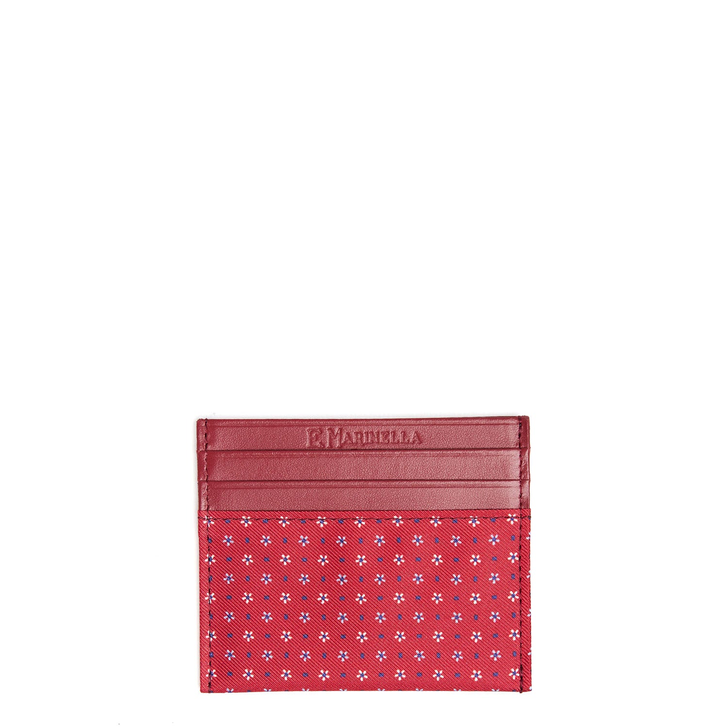 RED LEATHER AND SILK CREDIT CARD HOLDER