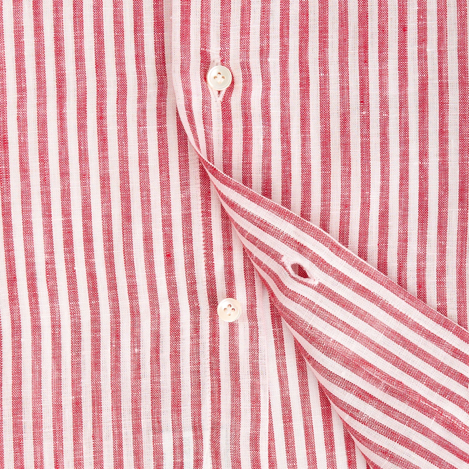 The linen shirt, with its light fabric, is a classic of the male summer wardrobe. The French collar gives it a younger and more modern style while the armhole, entirely sewn by hand, gives it more comfort. Embellished with mother-of-pearl buttons, it is an informal shirt, perfect to wear on hot summer days.