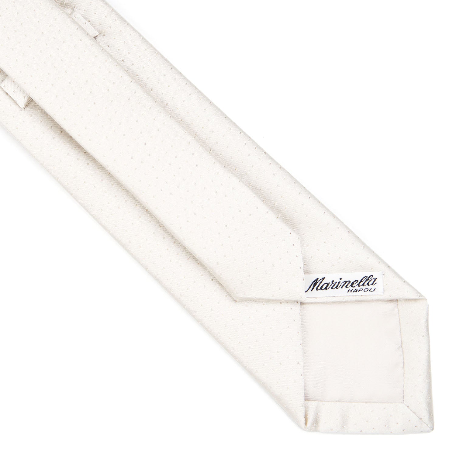 The silk satin tie is entirely handmade. Thanks to the natural sheen of silk, it imparts a smooth effect with a subtle shimmer. The tie features a micro polka dot design and is recommended for daytime ceremonies in a formal setting. Ideal for the groom opting for a classic style, as well as fathers of the couple and witnesses. 3-fold tie